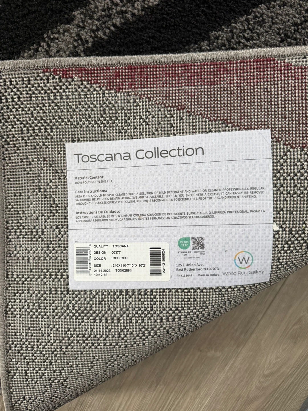 10Selling a Toscana Collection rug in red and grey! It's made of 100% polypropylene and measures 10' x 10'2". The design number is 00377. This rug is in great shape and ready to add some style to your space
