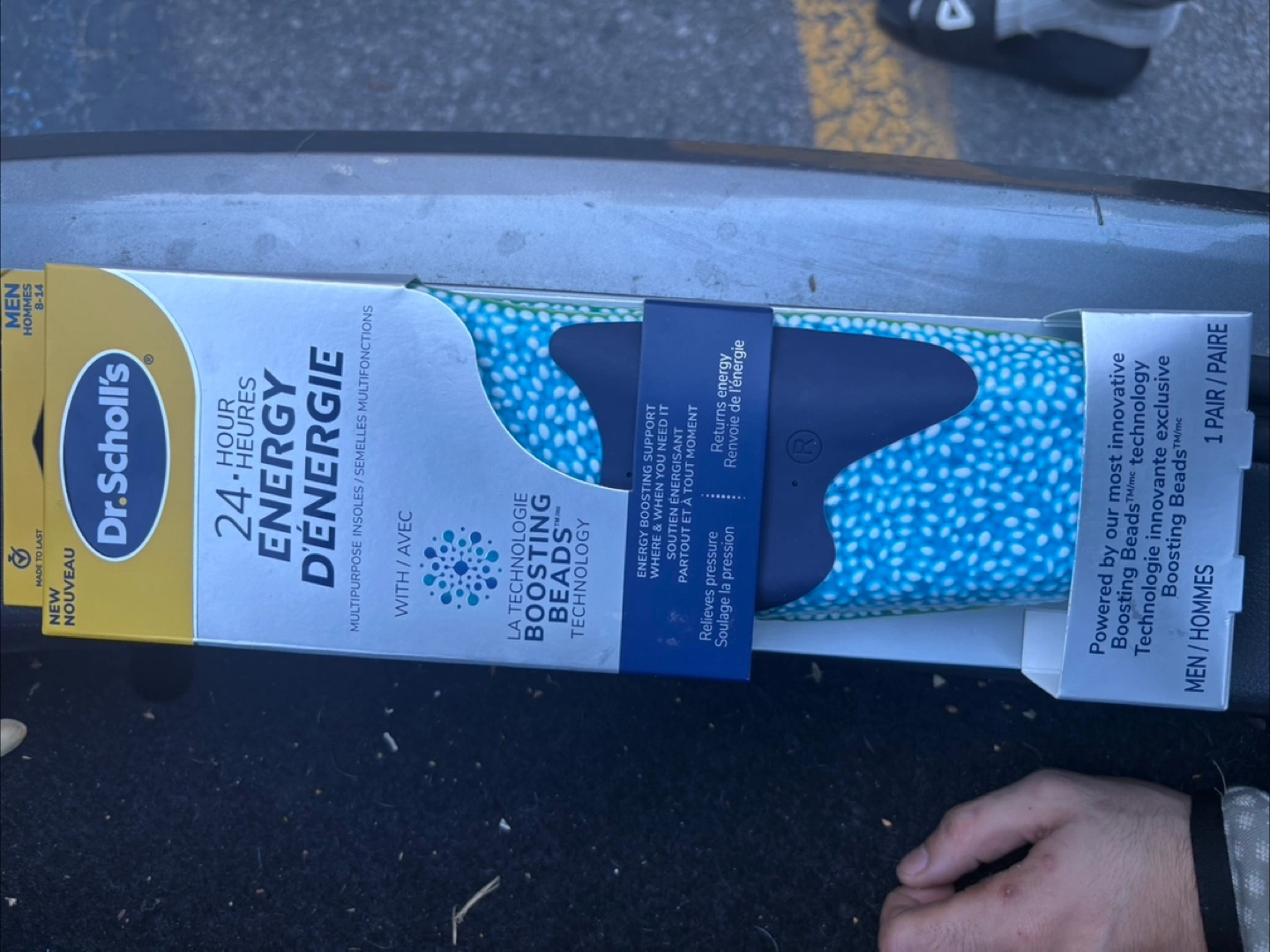 I have a pair of Dr. Scholl's 24-hour energy insoles for sale. They are men's size 8-14. They feature boosting beads technology for energy boosting support anytime and anywhere. They are designed for any shoe or activity!
