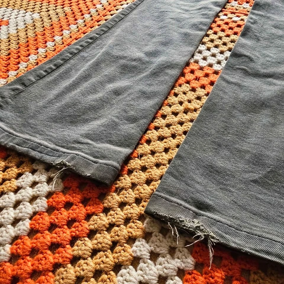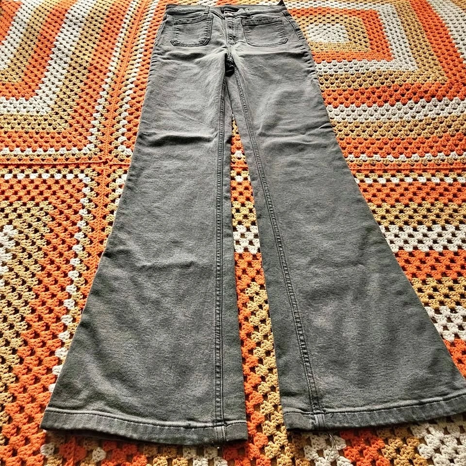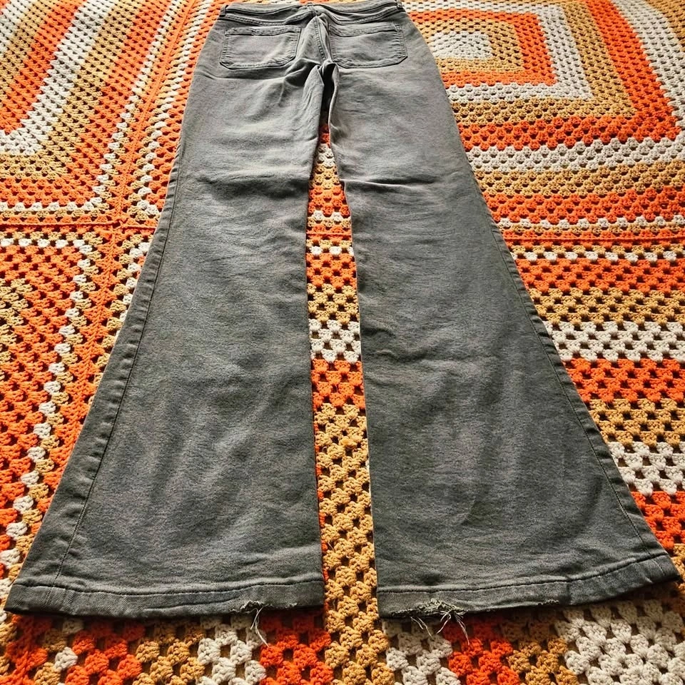 drab olive green military green flared leg jeans grunge goblincore alternative hippy hippie festival