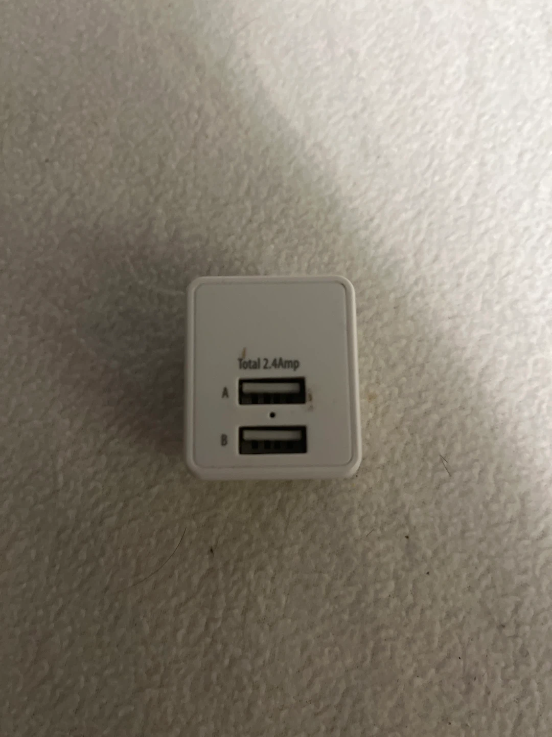 Selling a white USB wall charger with a total output of 2.4Amps. It has two USB ports, labelled A and B. Perfect for charging your devices!