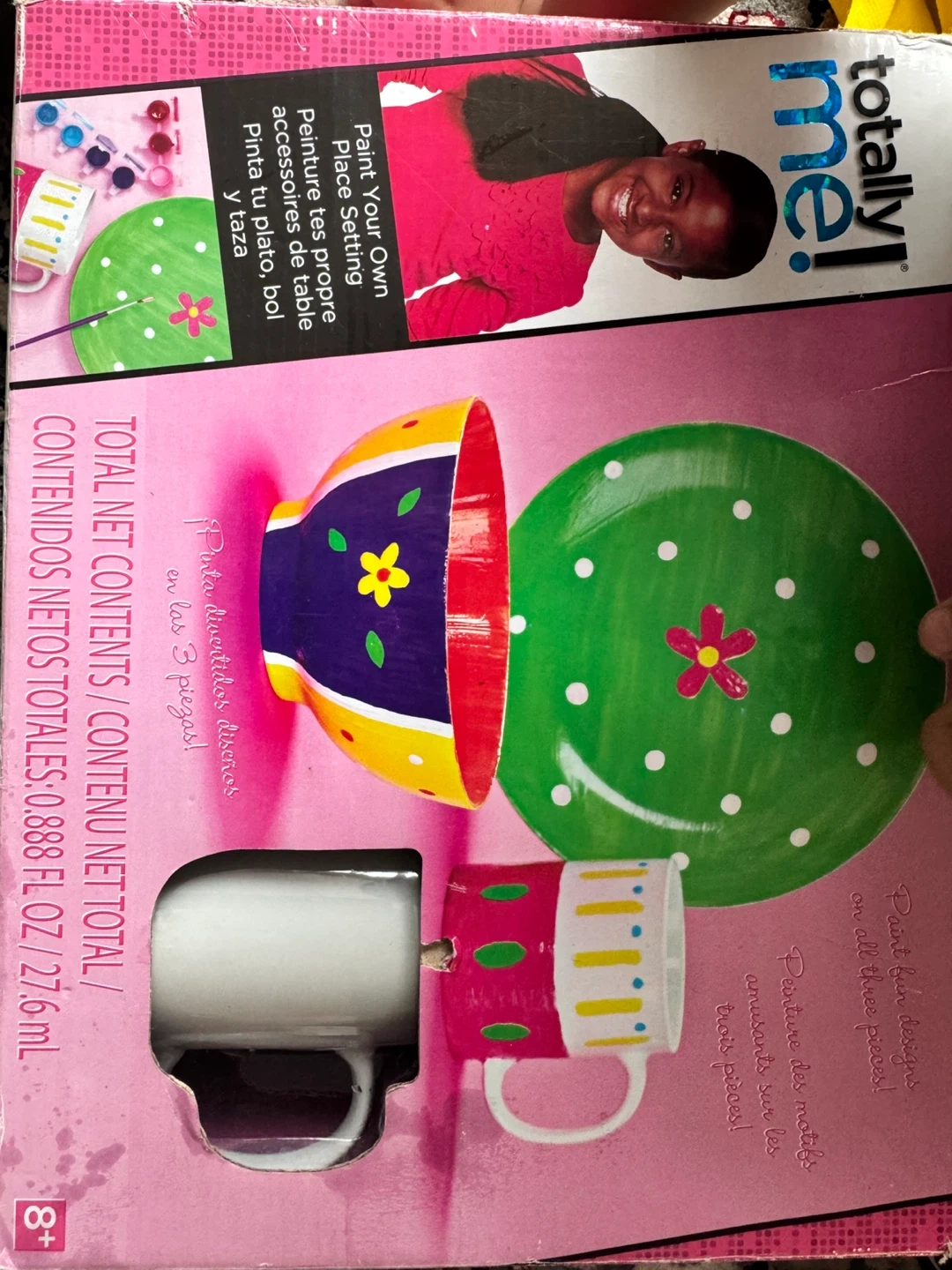 Get creative with this Totally Me! Paint Your Own Place Setting! It's a fun kit to personalize your own dishware. Includes accessories to paint your plate, bowl, and mug. Perfect for kids aged 8 and up!