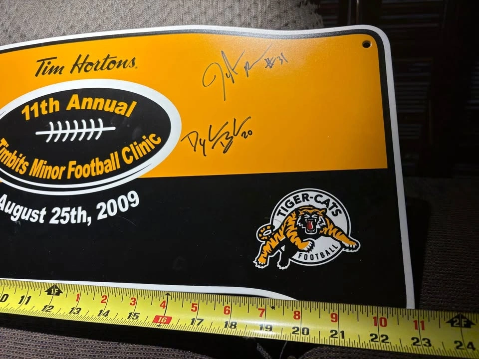 Buy & SellHamilton Tiger-Cats 2009 SIGNED Tim Hortons Clinic Street SignHamilton Tiger-Cats 2009 SIGNED Tim Hortons Clinic Street Sign$20A piece of Ti-Cats history from the Ivor Wynne stadium. Nice addition to your man cave. Pickup only in Burlington. Price is firm.WHERE TO MEETCheck LocationView MapSELLERverifiedYves BPinedale1083 reviews0 chats·1 favorites·7 viewsSEND CHAT TO SELLERHi Yves B! I’m interested in your listing.Hi Yves B! I’m interested in your listing.Get the Karrot app to chatSign In to chat