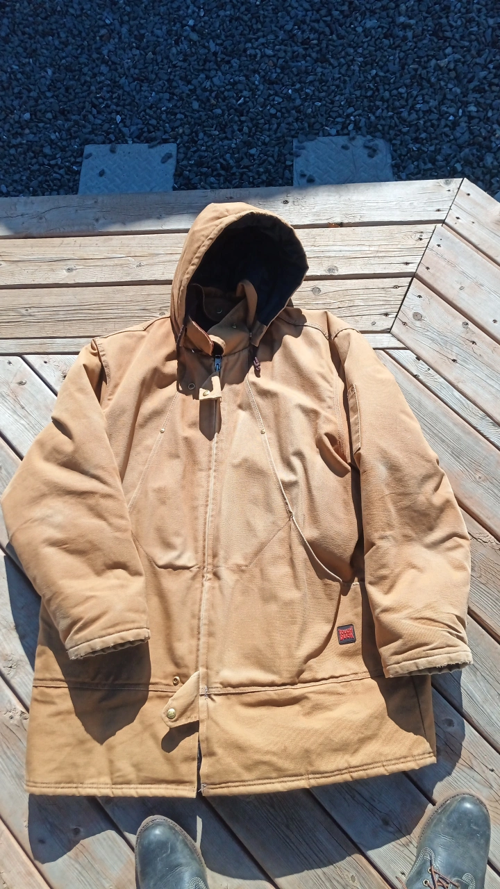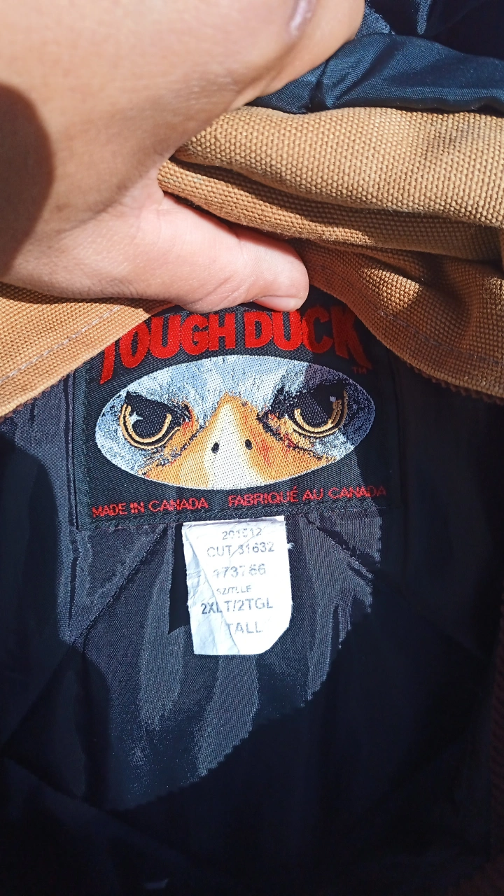 Selling a Tough Duck jacket in size 2XLT (Tall). It's a brown colour and made in Canada. Please see the photos for condition details! mint condition little pilling on cuffs