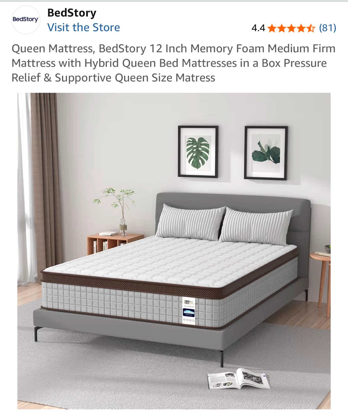 BedStory 12 Inch Queen Memory Foam Hybrid Mattress