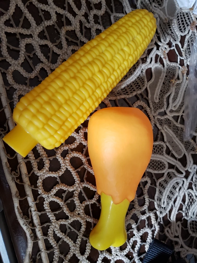 130Selling a cute pet toy food! each 3$ Includes a bright yellow corn on the cob and a chicken leg. Rubber squeaky pet toys