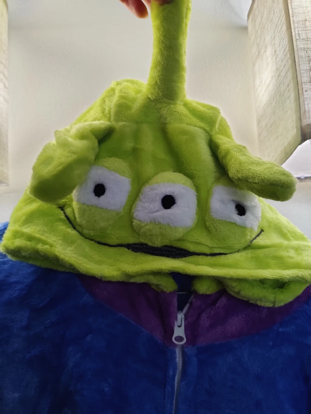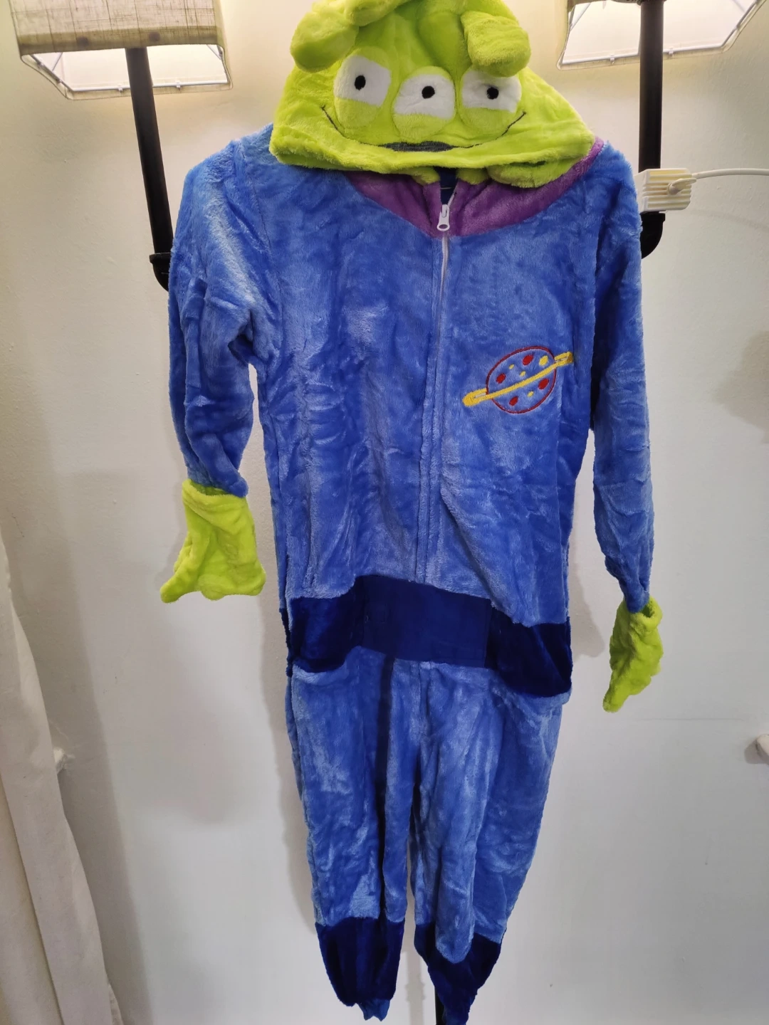 26Here's a fun Toy Story Alien onesie! It's blue and green, perfect for lounging around the house or for a costume party.
