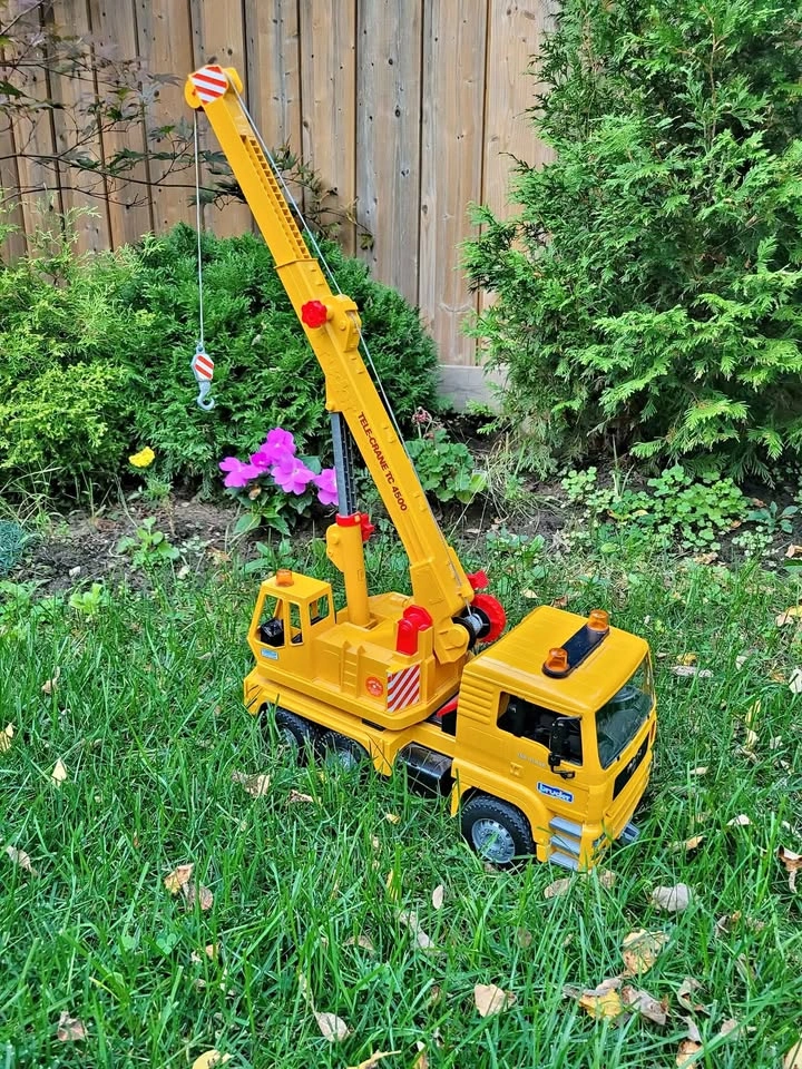 20This yellow toy crane truck is super fun and high quality! You can move and control the crane any way you want. The rope works with a lever so you can lift and lower things just like a real crane. Excellent build quality and works perfectly. Like new condition! Bought for $115 off amazon. Perfect for kids or collectors. Message me if interested!