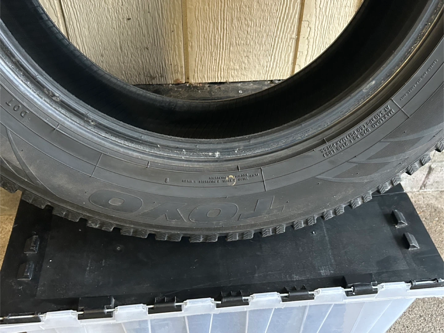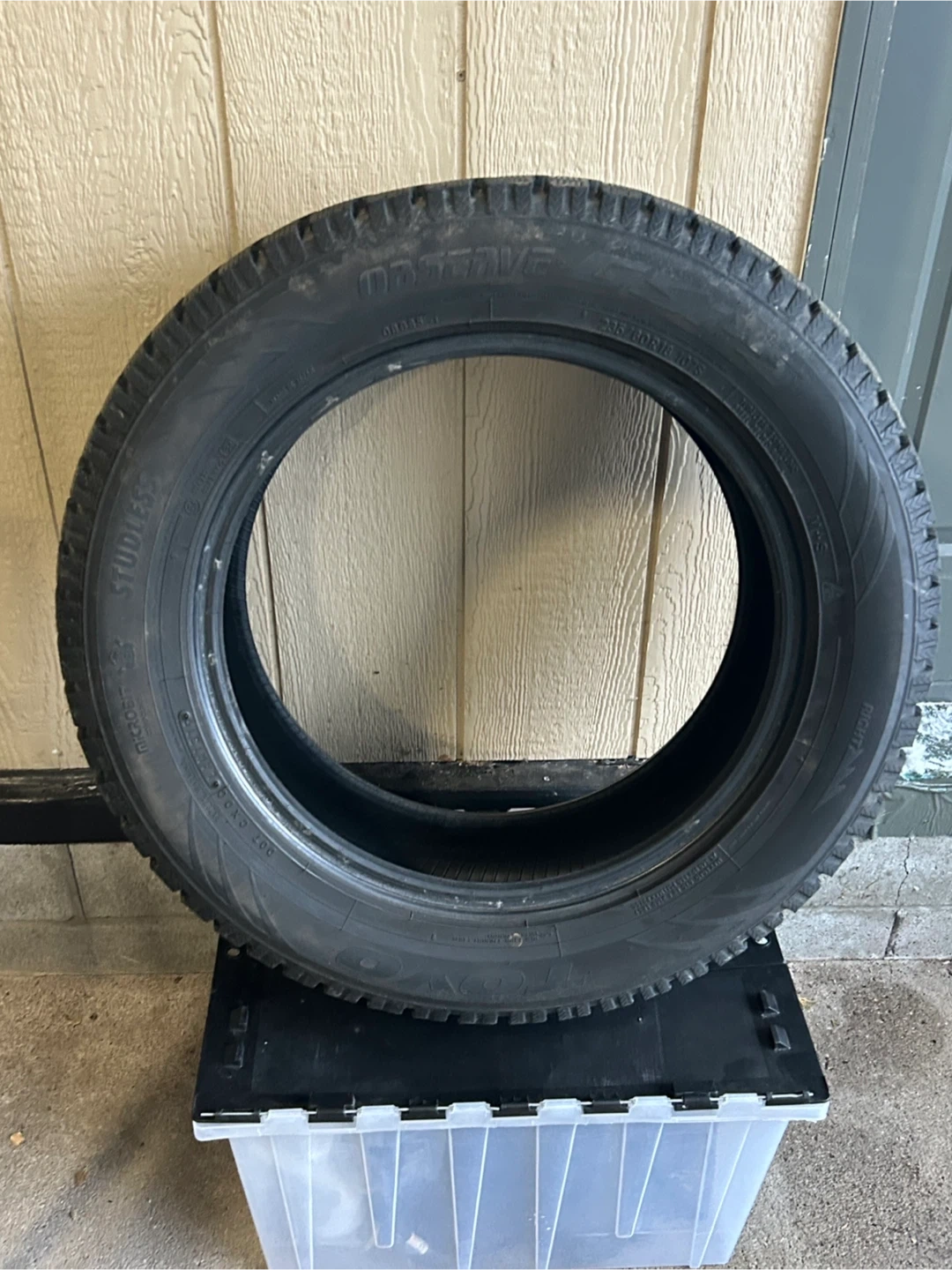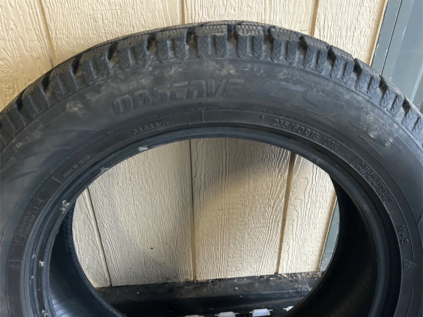 59Toyo Observe G3-ICE winter tire with the size specification 285/60R18. A tire designed for winter conditions. The "M+S" (Mud and Snow) marking and aggressive tread pattern which is an winter tire, optimized for grip in cold temperatures, snow, and ice. *Only used for a couple of months each winter over the past 4 years.
