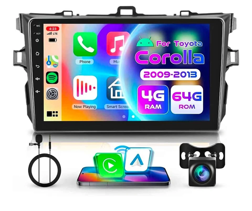 704G 64G Android Car Stereo for Toyota Corolla 2009-2013, Wireless Carplay Android Auto Car Radio, 9'' Touch Screen Head Unit with Bluetooth GPS Navigation Mirror Link WiFi FM/RDS DSP Backup Camera SWC Ref: FT- TC0913/A13-4-64