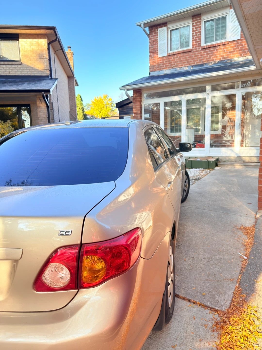 70Selling a gold Toyota Corolla. It's in good condition and ready for a new owner! Toyota Corolla Ce 4DR 2009 (Known for it’s reliability) Mileage 250k Winter tires are also available and currently installed with all seasons. No issues at all. Drives Great New Alternator and spark plugs. Going to India and don’t have any parking space during that time. Ready to negotiate after meeting. Only serious buyers.