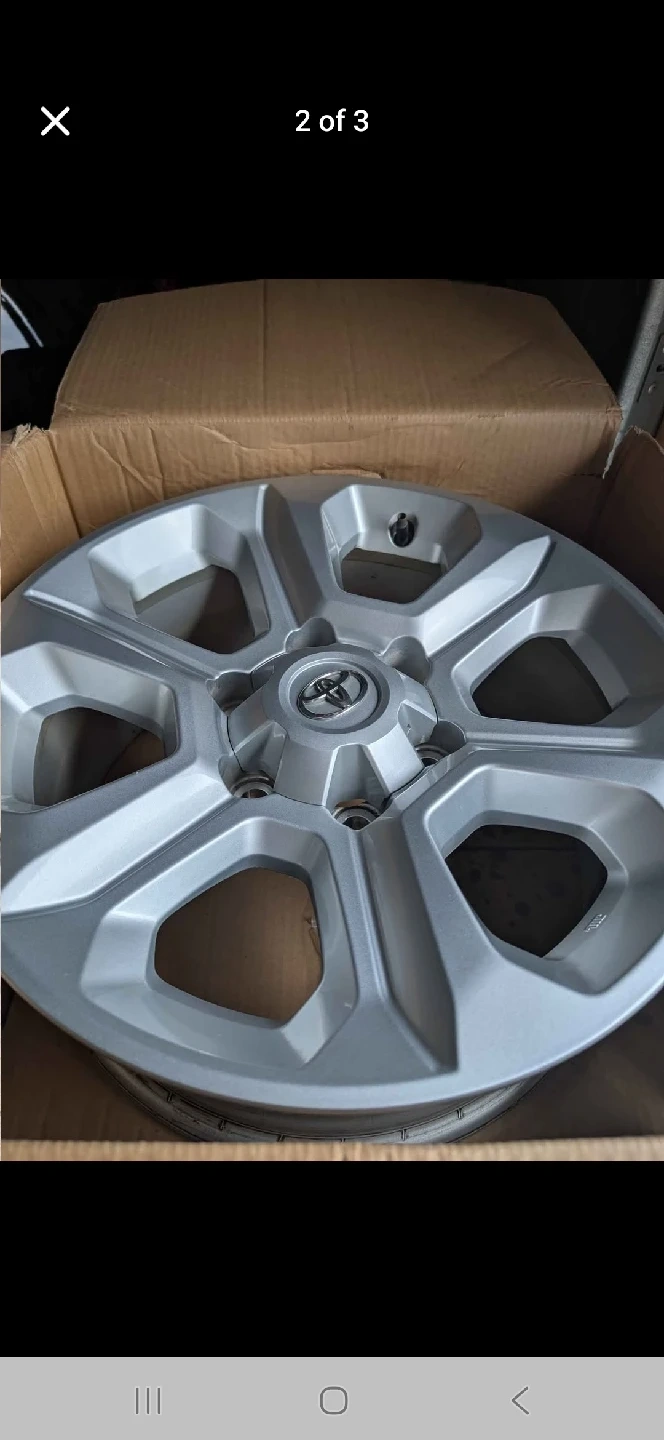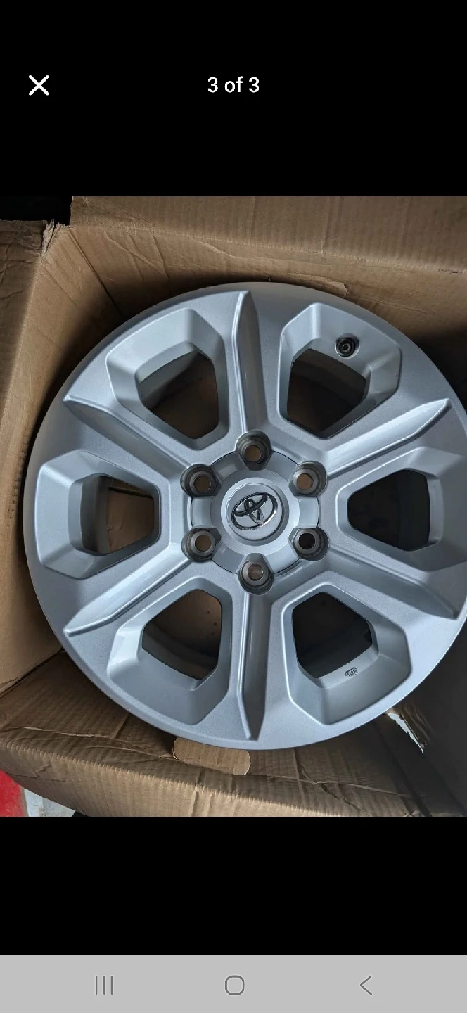 5Selling a Toyota rim. It's silver and in mint condition! lightly used. Absolutely no curb rash. Still in original boxes. $600 firm.