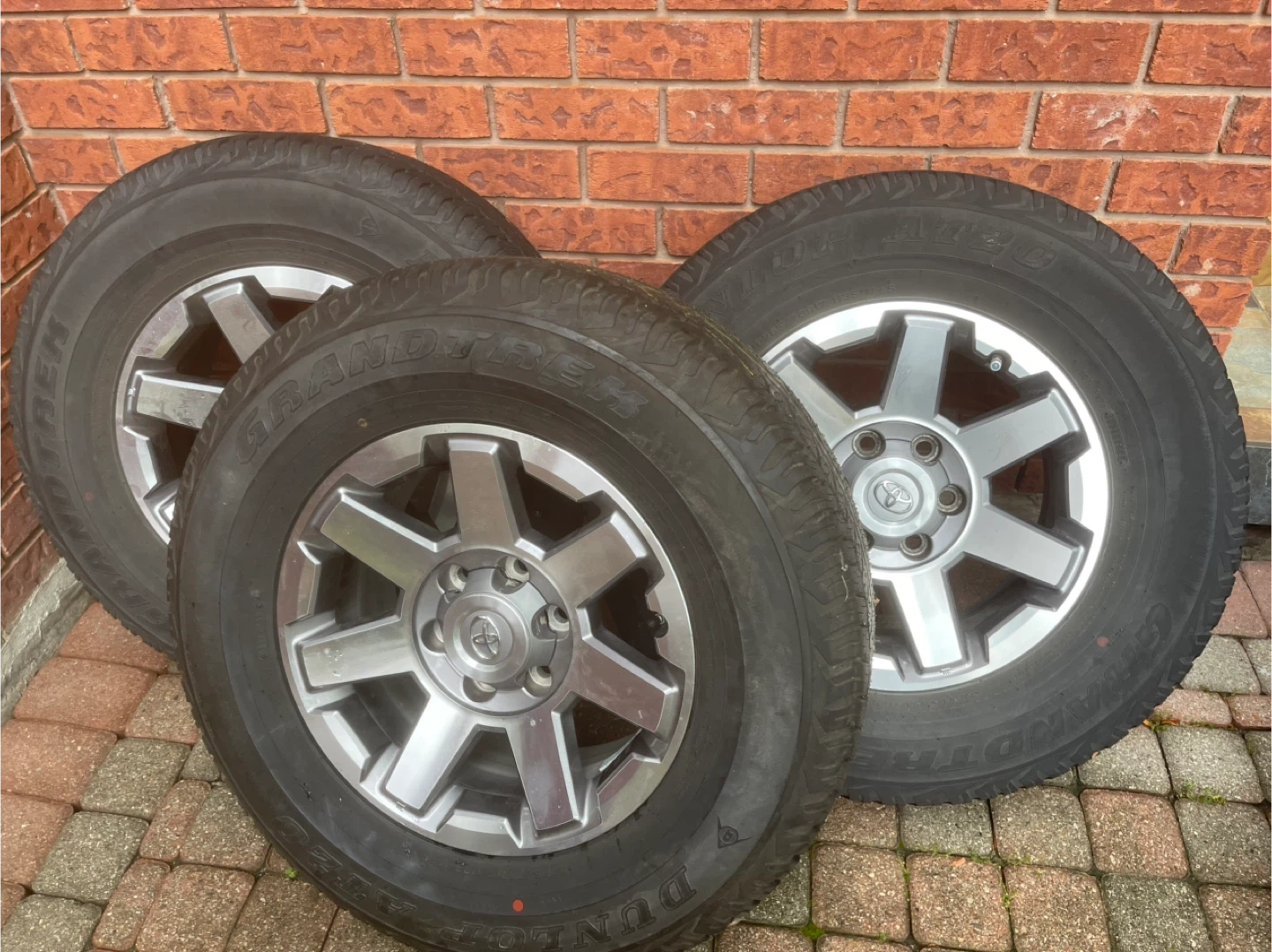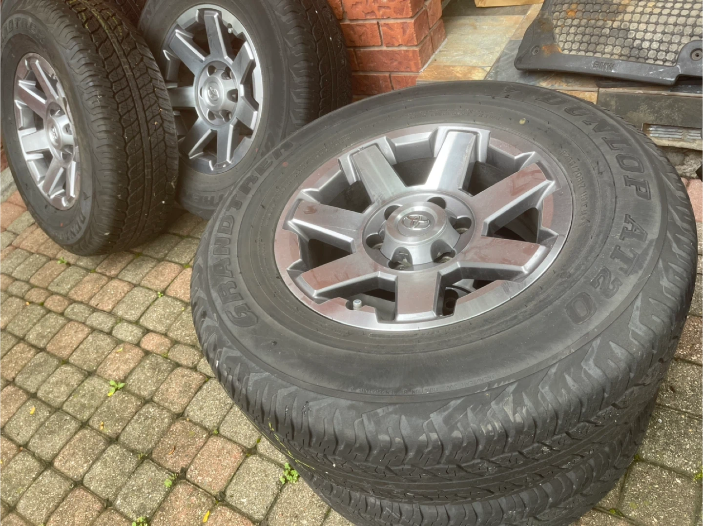 10For sell a set of 5 original rims from FJ, will fit tacoma, 4 Runner …. Etc (please check for fitment) . Mint condition, no damage, not even a curb rash. One is never been used, as a spare. A lots of tread life left 85% , 8/32” (new 10/32”). Need to go, truck gone. $1950. No low baller please.