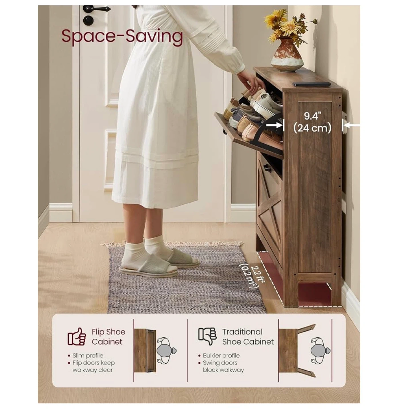 Rustic Wood Shoe Cabinet - Flip Shoe Storage Organizer