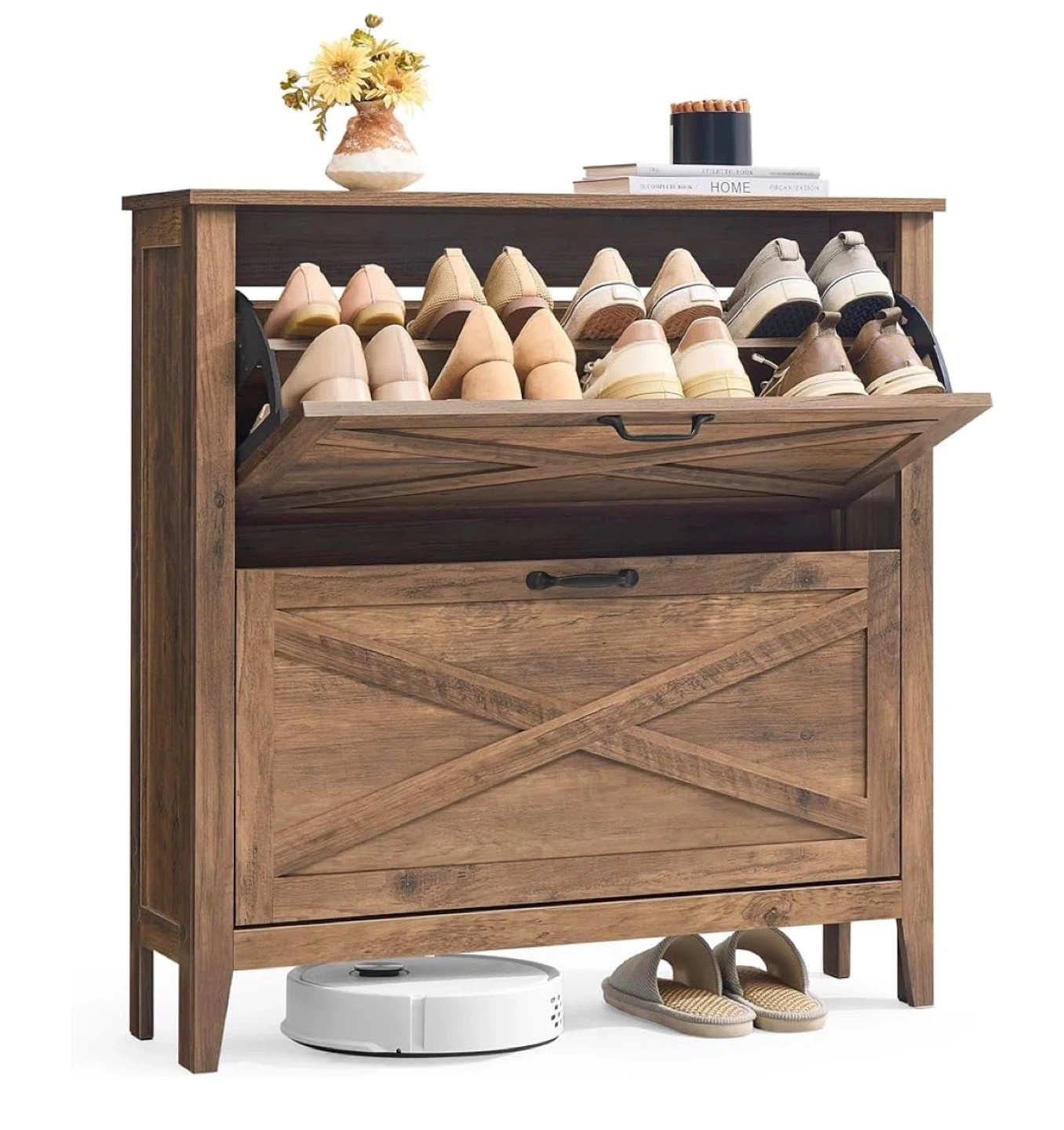 Rustic Wood Shoe Cabinet - Flip Shoe Storage Organizer