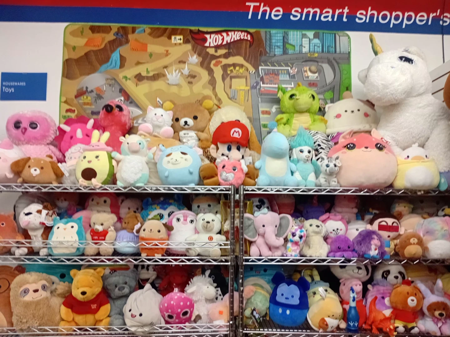 You tell me if like one and ill send you the price .A collection of plush toys featuring various characters and animals. They're made from soft, huggable materials. Great for kids' rooms or as playful decor!