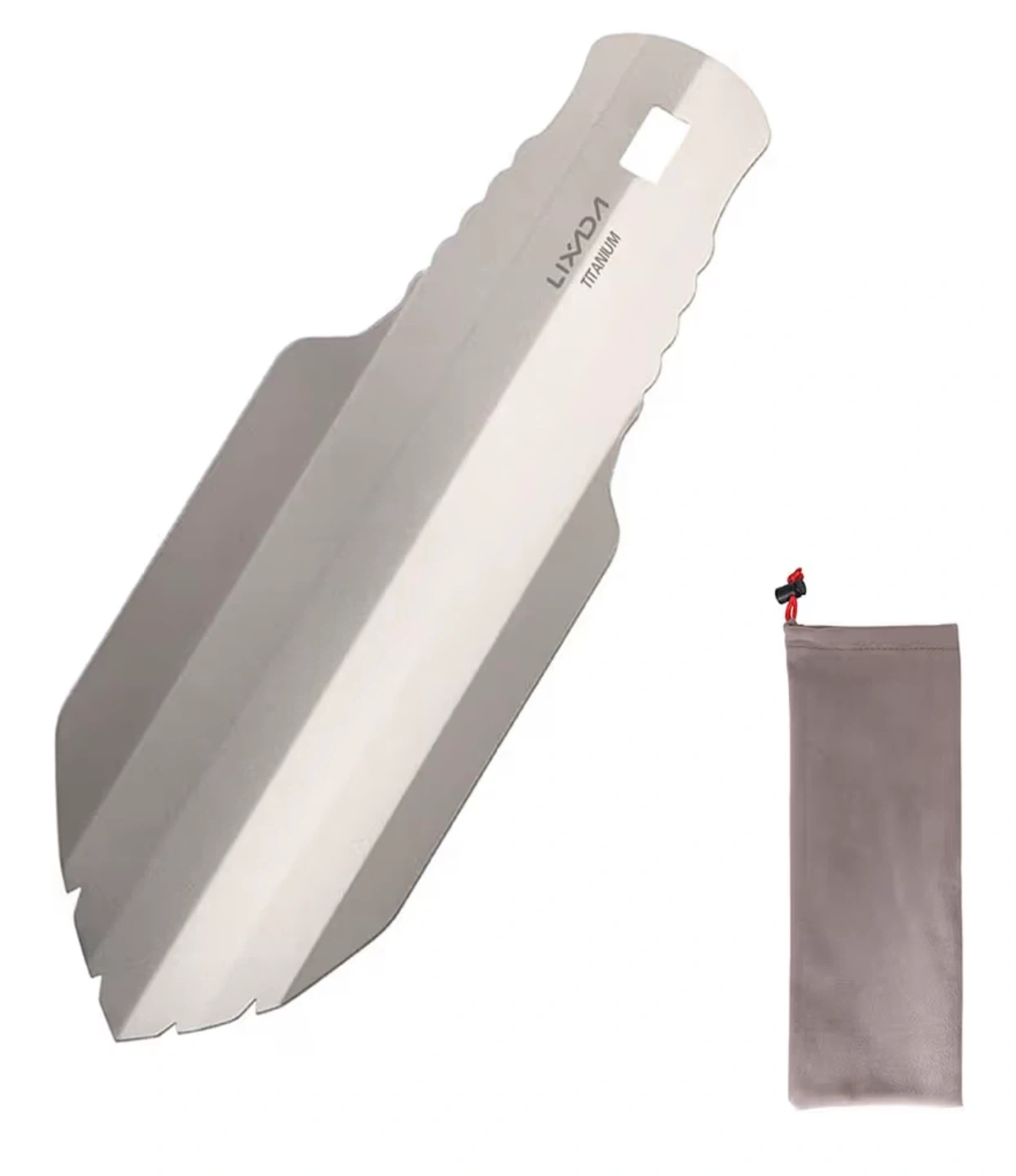 Selling a Lixada titanium camping shovel. It's lightweight and easy to carry for all your outdoor adventures. Comes with a carrying pouch for convenient storage and transport