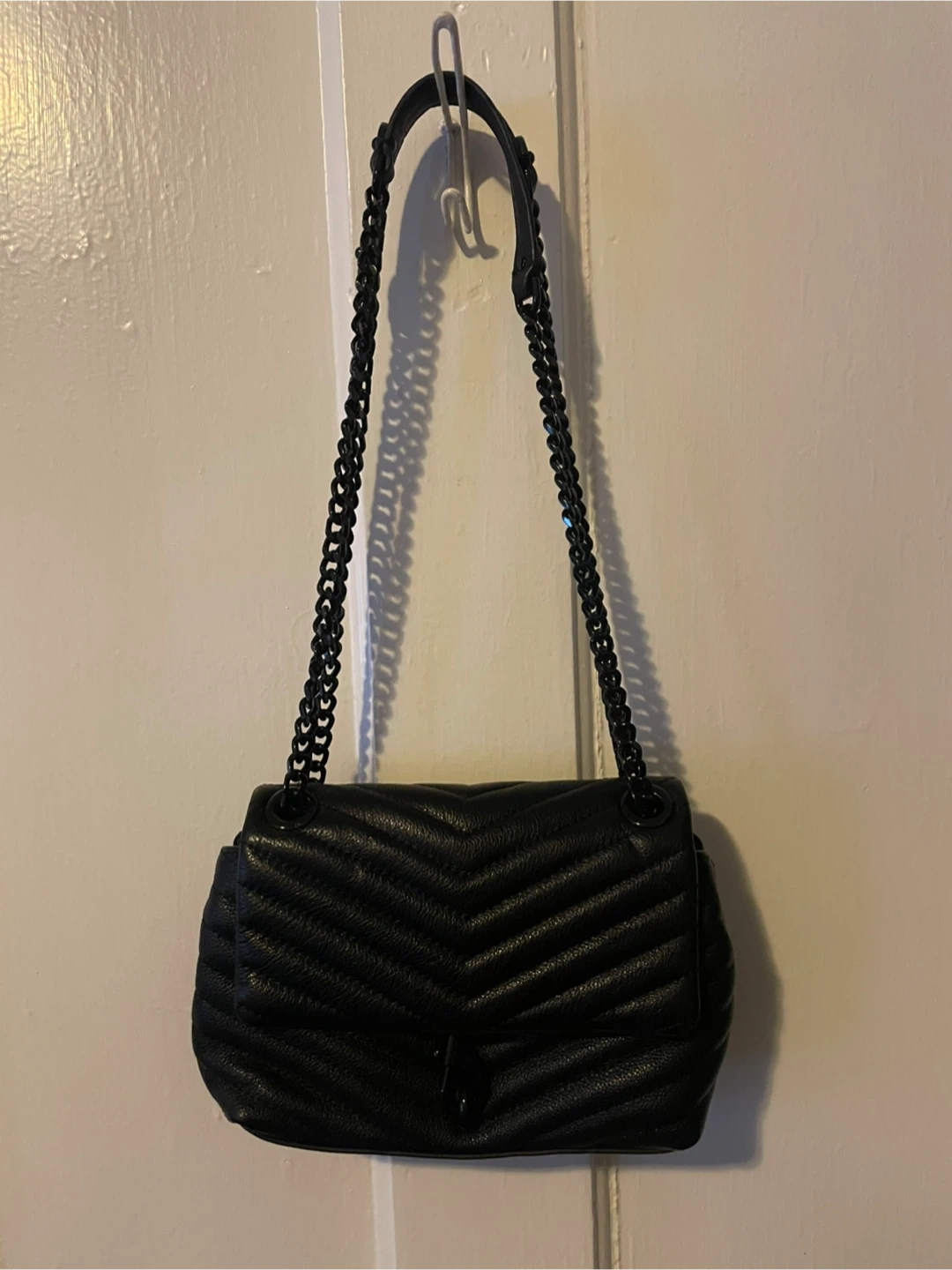 • Chic quilted leather bag with chain-link strap and dog clip