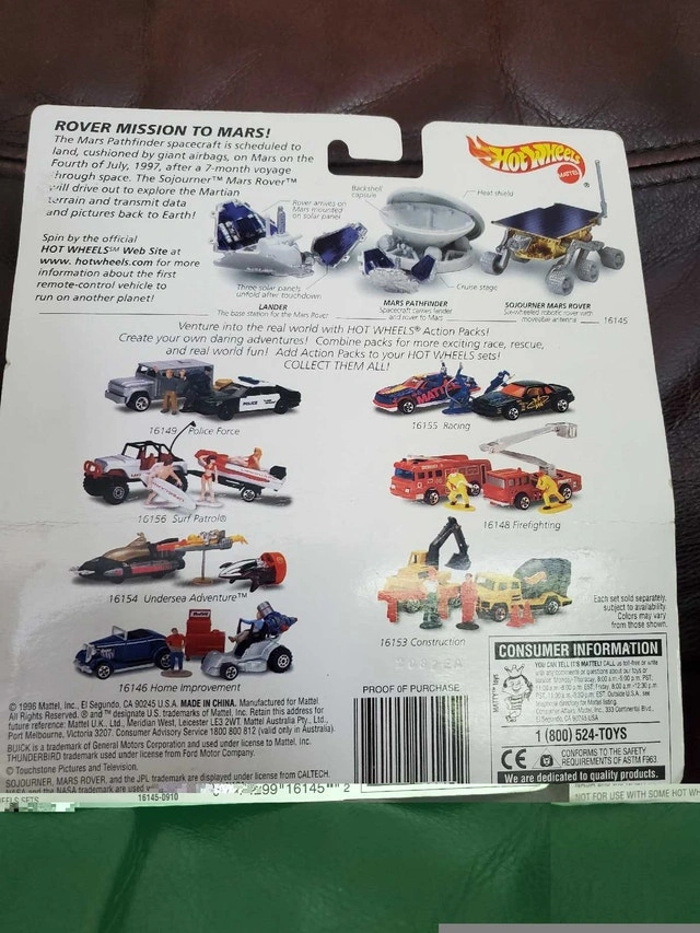 For sale, a new in box, Mattel Hot Wheels Action Pack JPL Sojourner Mars Rover set. As pictured, the card has some bending and scuffing. Stored in a smoke-free environment. Available for pickup only in the Whites Rd / Strouds Ln area of Pickering. Check out my other Kijiji ads too - open to reasonable bundling offers. Thanks!