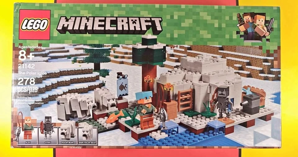 Some damages to box, please see photos! "Survive the Chill with LEGO Minecraft 21142 The Polar Igloo!" Embark on a frosty adventure with LEGO Minecraft 21142 The Polar Igloo, a set inspired by the icy biomes of Minecraft. This detailed build is perfect for fans of the game who love survival challenges and creative play. Set Highlights: Iconic Minifigures: Includes Alex, a Stray, and a buildable Polar Bear, ready to bring the icy biome to life. Interactive Igloo Build: Features a cozy igloo with a removable roof for easy play, complete with a crafting table, furnace, and a bed. Unique Ice Features: Includes a redstone torch, arrow dispenser, and frozen lake elements to create traps and defense mechanisms. Play Accessories: Comes with a fishing rod, fish, bow, and more to spark imaginative gameplay and storytelling. Perfect for Play and Display: Recreate Minecraft scenes, battle the Stray, or use the igloo as a charming display piece. BNIB - Brand New in Box: Retired in 2019, this set is a rare find and a must-have for LEGO Minecraft fans and collectors. Add Arctic Adventures to Your Collection: Don’t miss the chance to own LEGO Minecraft 21142 The Polar Igloo and explore the frozen wilderness!