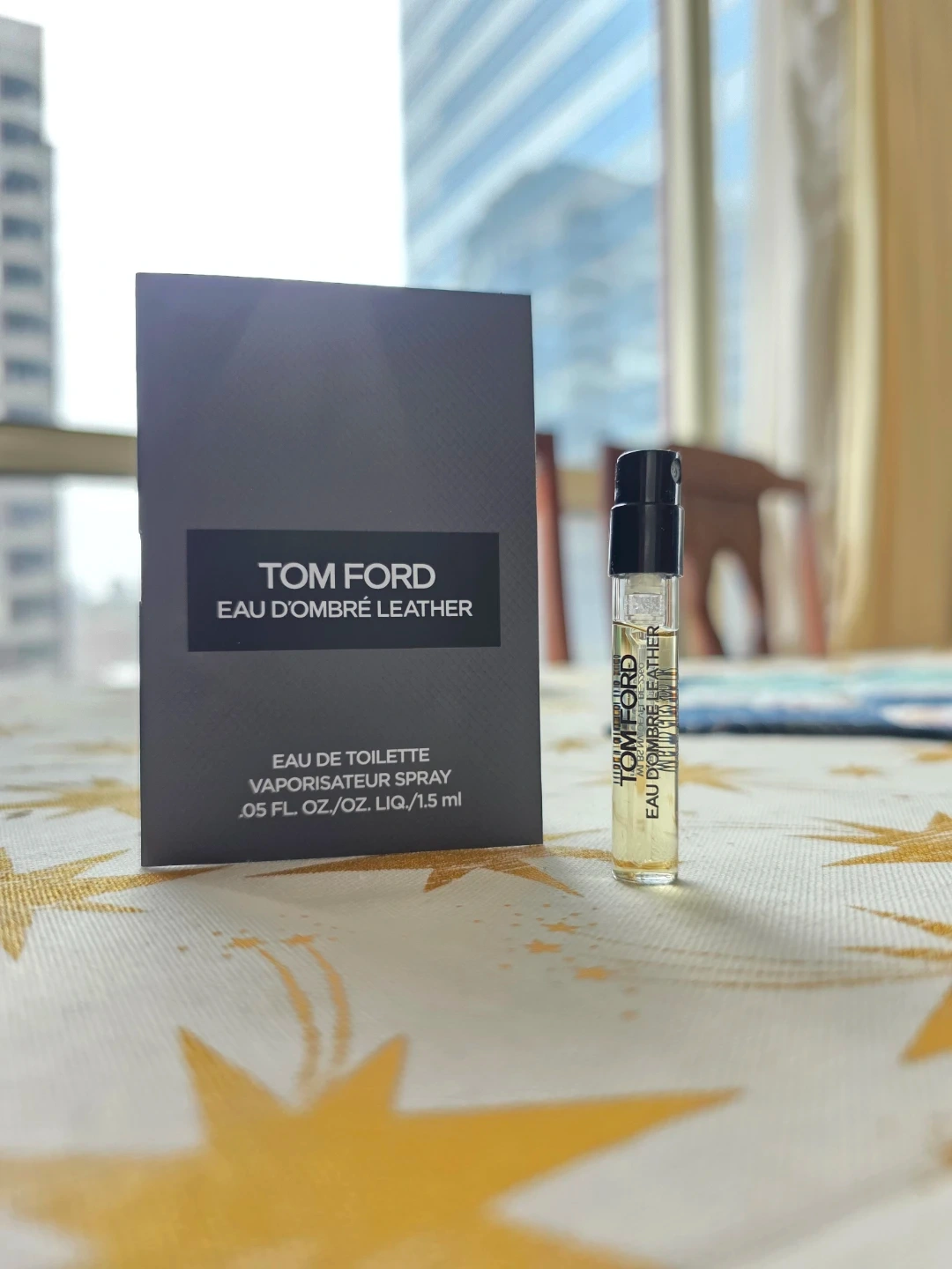 Includes three Tom Ford fragrance samples: Eau D Ombre Leather 1.5 ml, Oud Wood Eau de Parfum 2 ml, and Lost Cherry Eau de Parfum 2 ml. Perfect for trying out new scents!