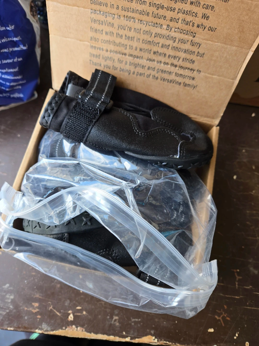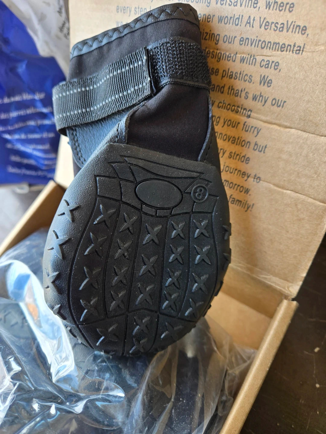 VersaVine dog shoes designed for medium and large dogs. These black dog boots offer paw protection with a durable sole. They're made with the dog's comfort in mind. Suitable for outdoor adventures or protecting paws from rough terrain.