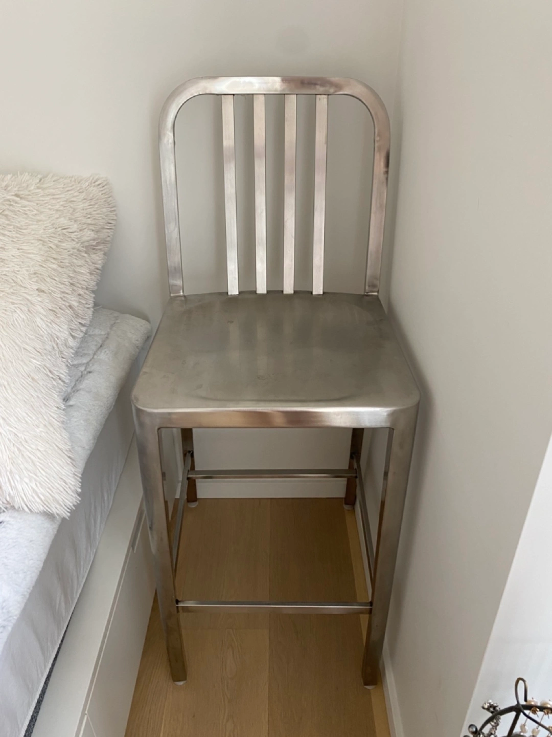 Selling a Restoration Hardware bar stool. It's a sturdy and stylish piece that would look great in any kitchen or bar area. It's in good condition and ready for a new home!