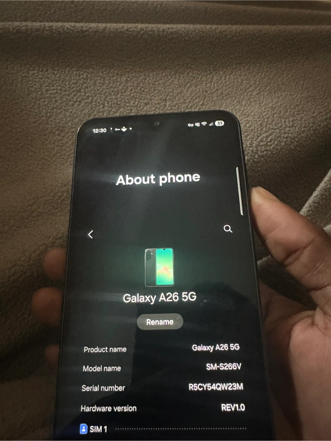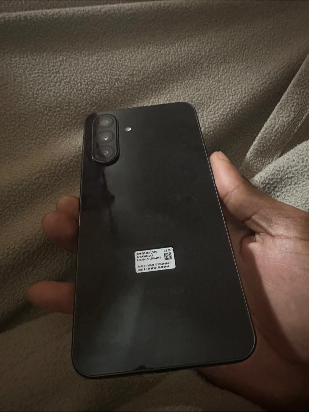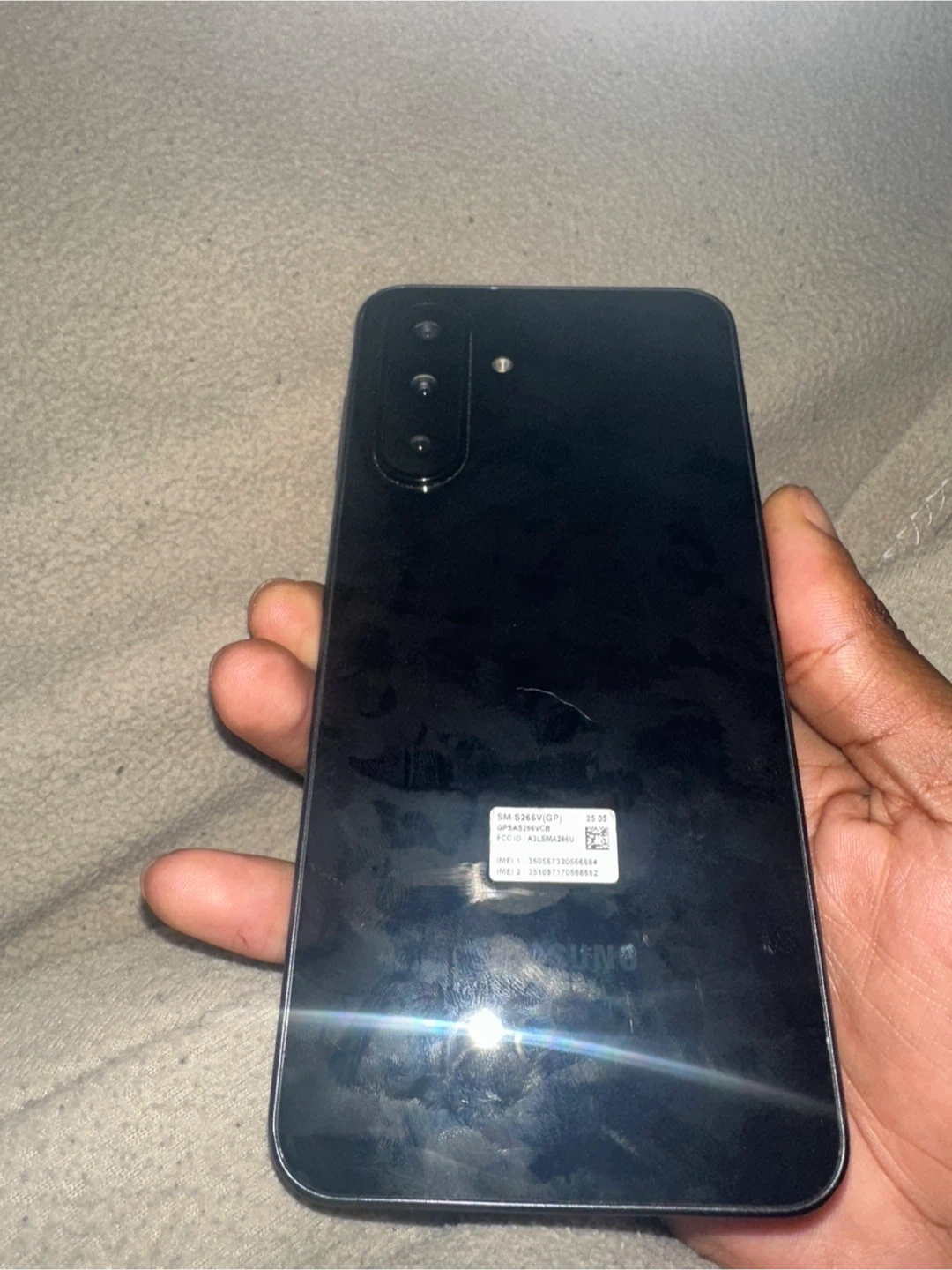 Samsung Galaxy A26 5G smartphone. Model SM-S266V. Black color. It's a 5G capable device with a sleek design.