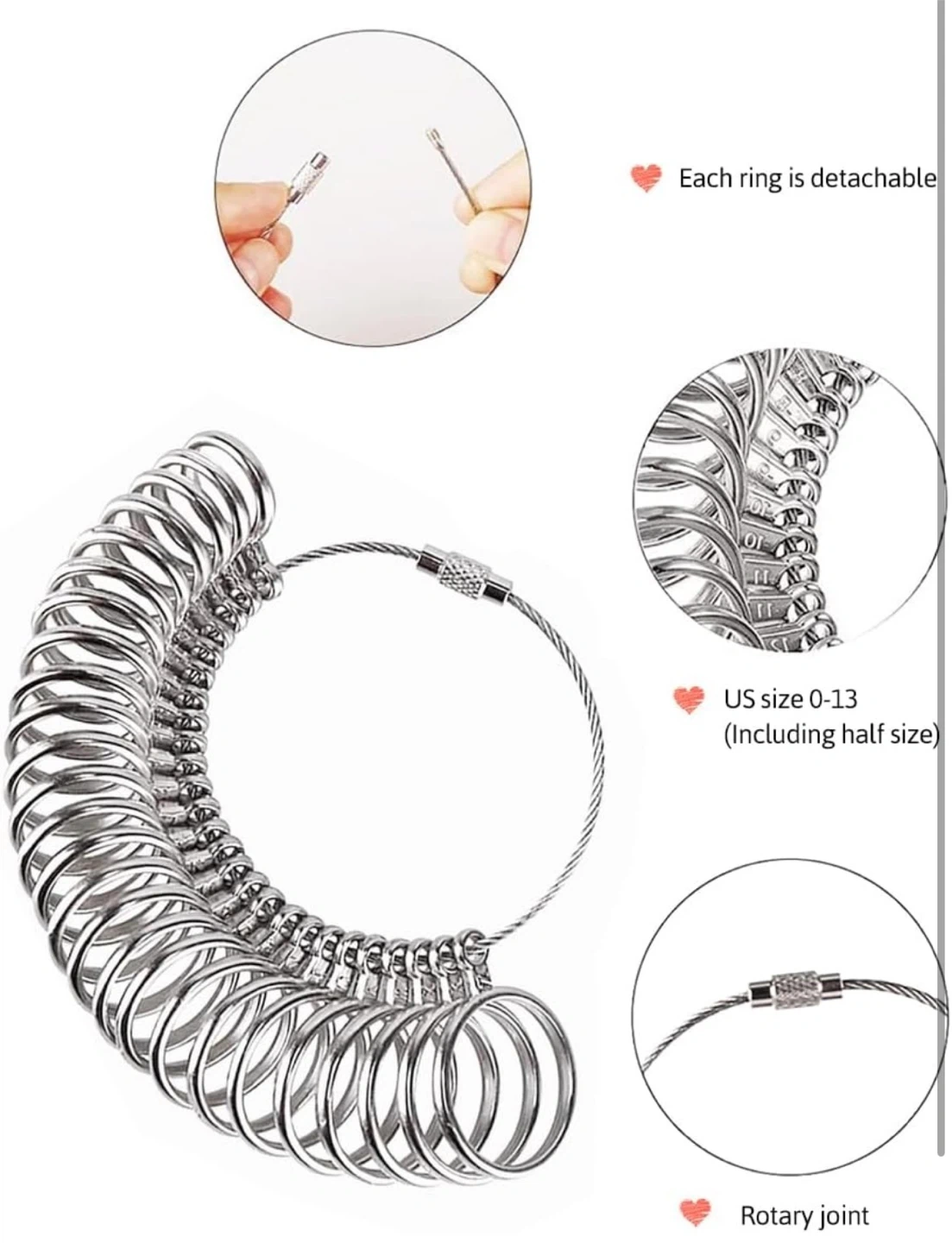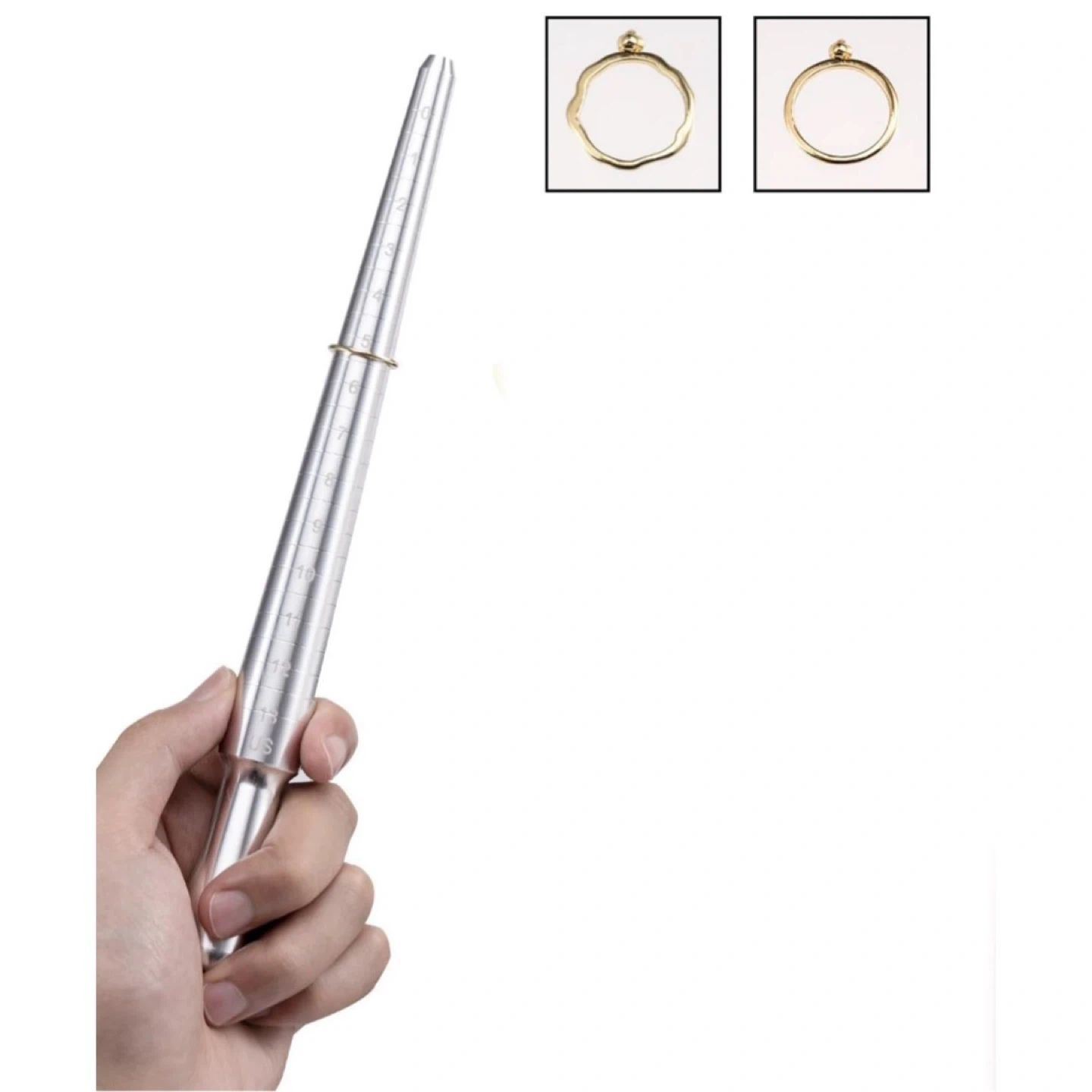 • Solid metal ring Mandrel with US sizes of 2-15 and European sizes of 41-76