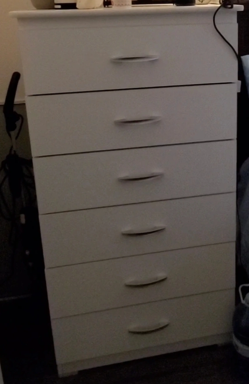 Here's a lovely white chest of drawers with 6 drawers! It's in great shape and ready to add some storage to your space