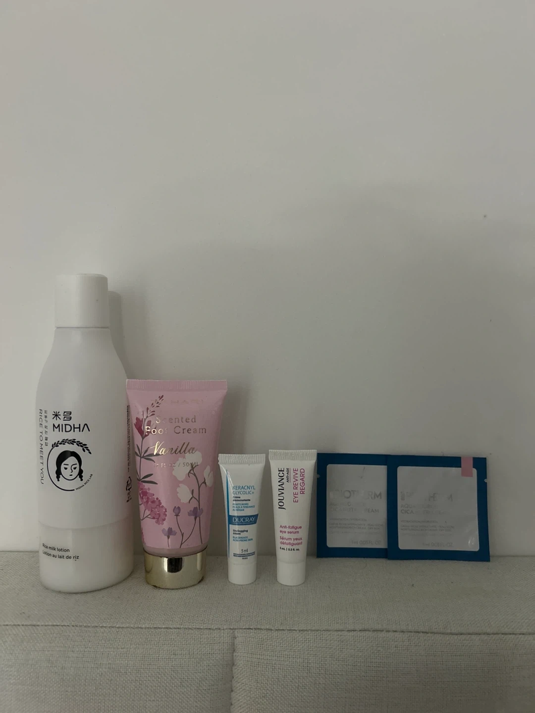 MIDHA Rice Milk Lotion, Vanilla Foot Cream & Skincare Samples