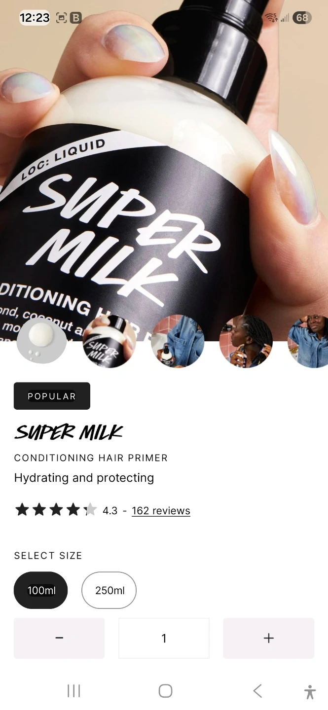 Need more hydration? Wash and condition hair like normal, then spritz this concentrated conditioner straight onto your hair. It's a dairy-free blend of almond, coconut, and oat milk that gives a hit of smoothing, soothing softness. Lemon juice adds shine and extra virgin olive oil nourishes and protects.