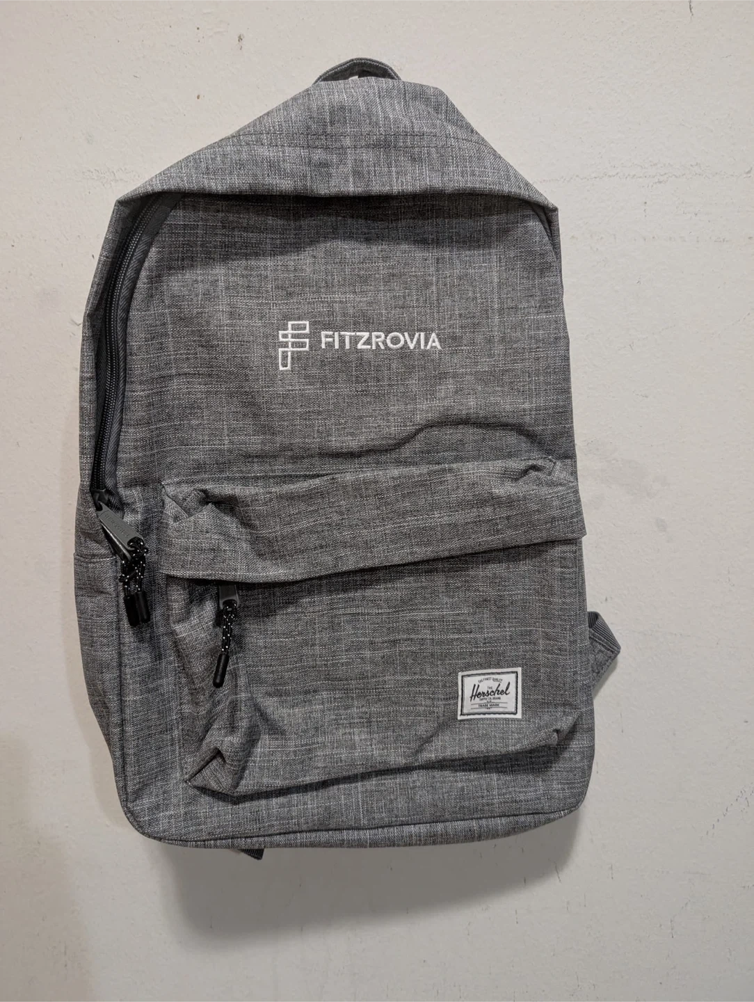 Selling a gently used Herschel backpack in a nice grey colour. It's in great condition and perfect for school, work, or travel. The backpack features the Fitzrovia logo.
