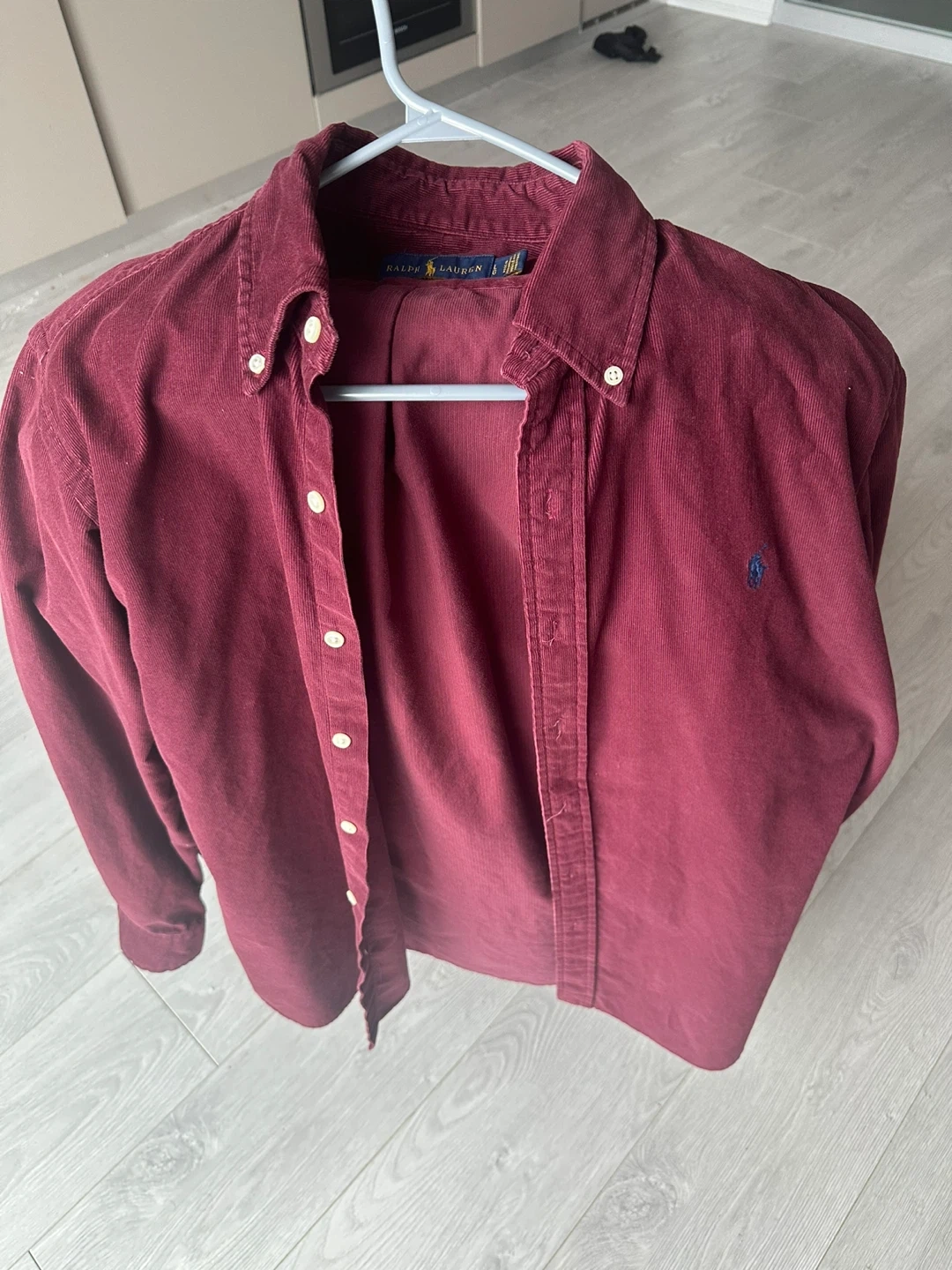 Ralph Lauren corduroy shirt in a lovely burgundy colour! It's a size large and in great condition. Perfect for layering or wearing on its own.