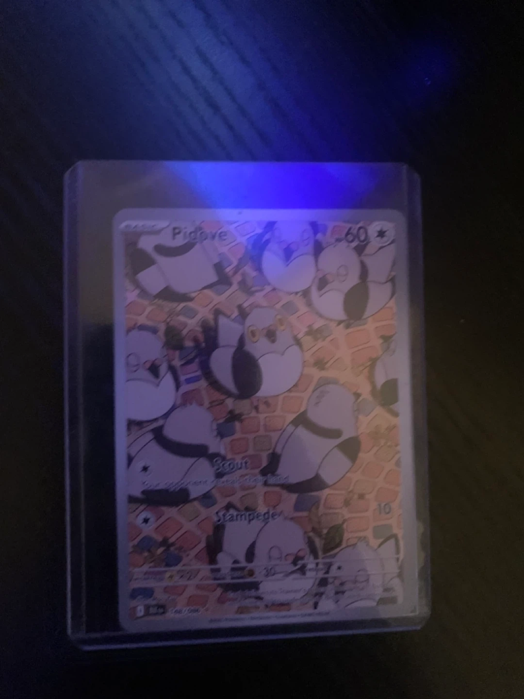 This is a Pokemon trading card featuring Pidove. It has 60 HP and a Stampede attack. It's a standard size trading card.