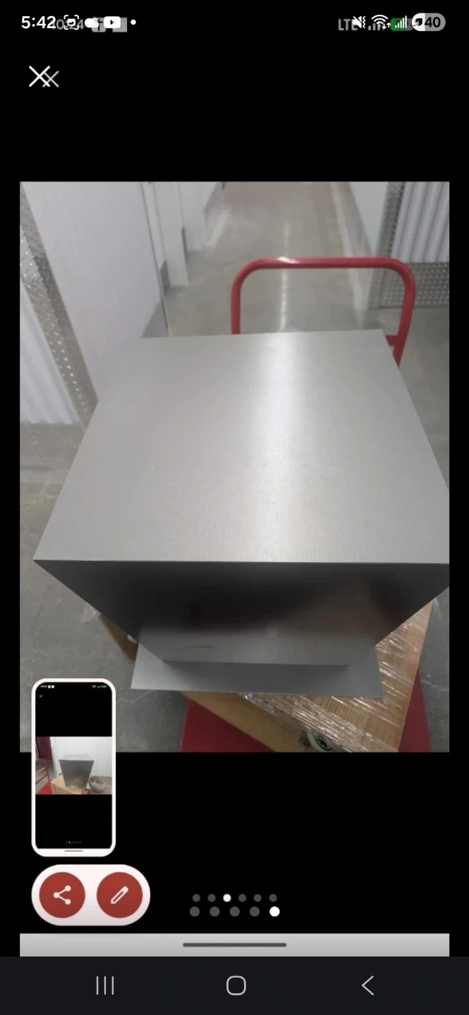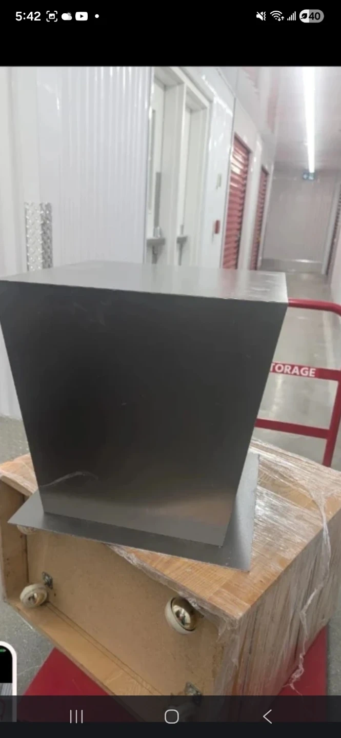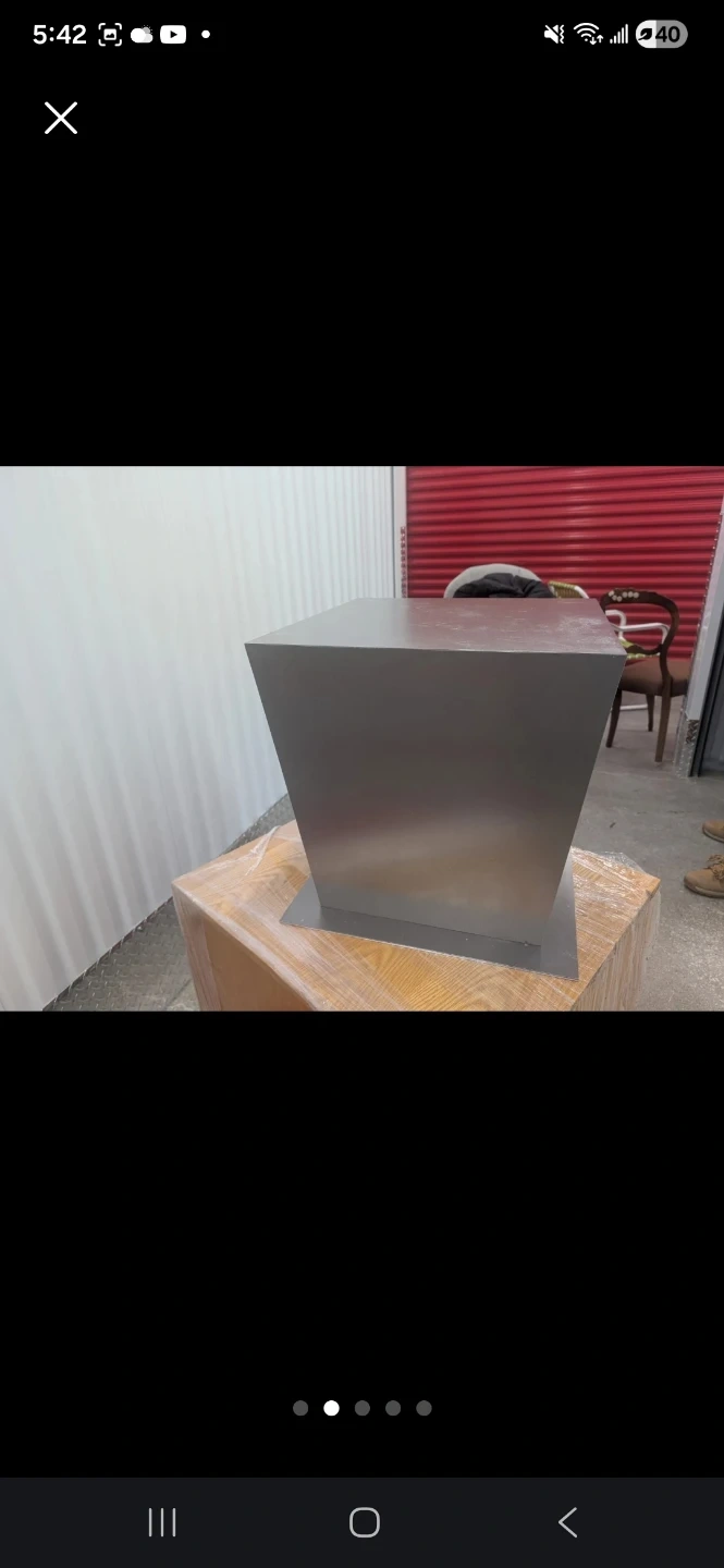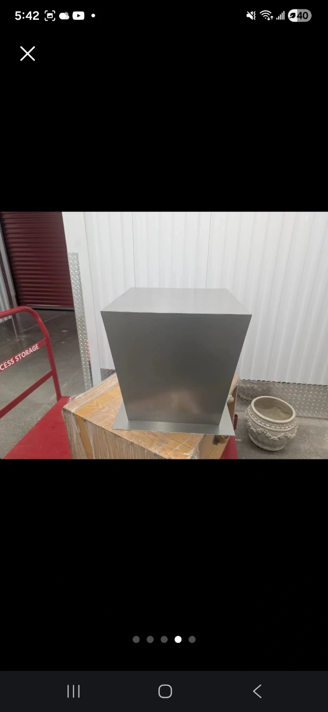 A sleek, modern pedestal stand in a neutral grey finish. It's constructed from a durable material, likely metal or a composite. The design is minimalist and geometric, perfect for displaying art, plants, or as an accent piece. It measures approximately 24 inches in height.