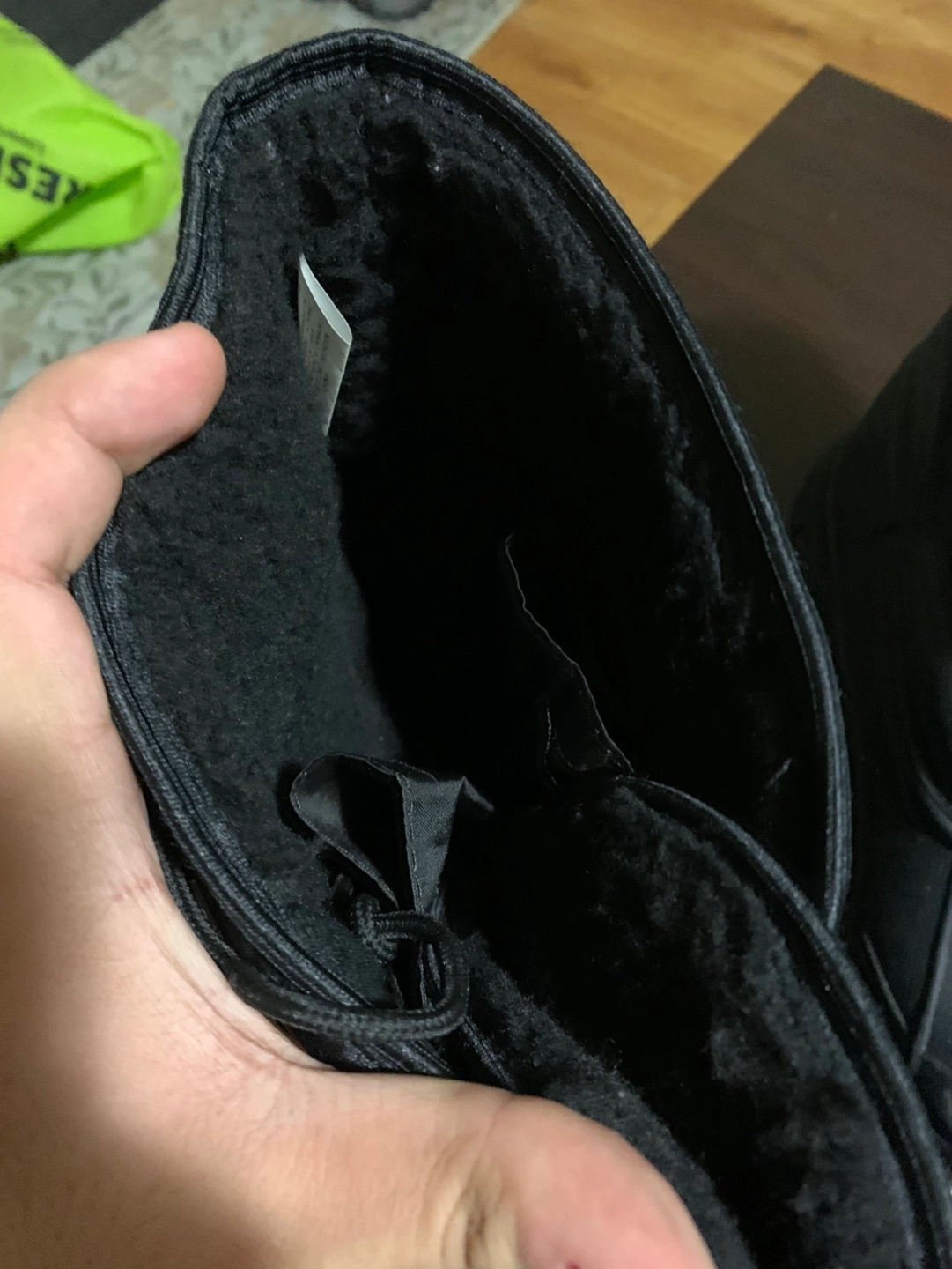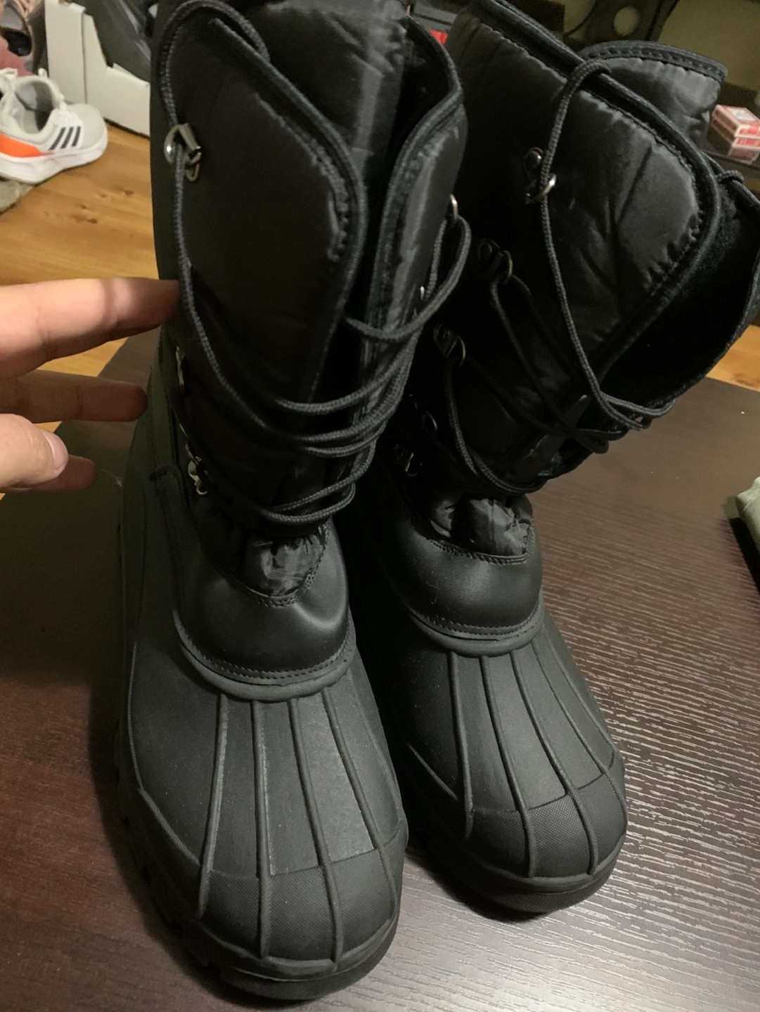 Black winter boots with a lace-up closure. Features a warm, fur-lined interior.
