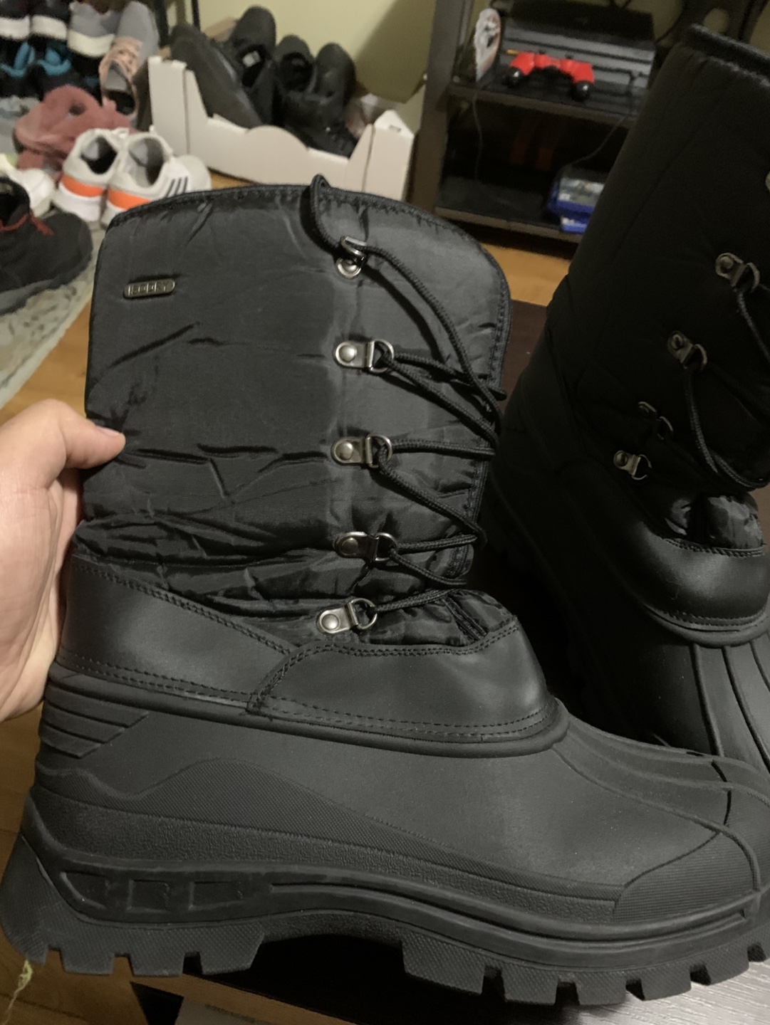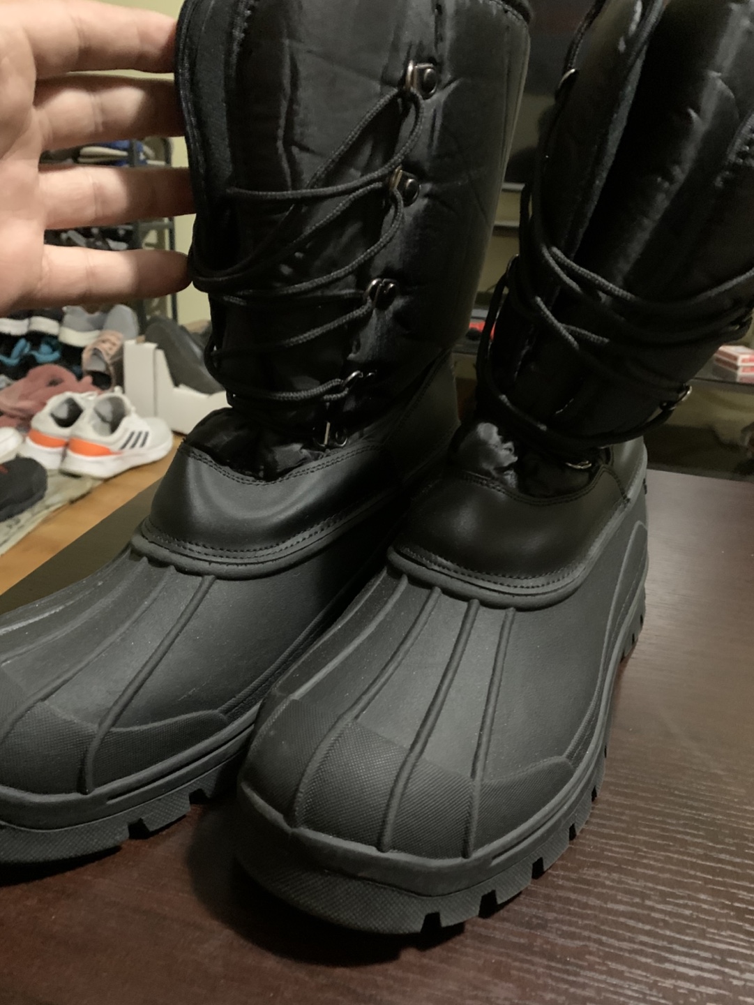 Black winter boots with a lace-up closure. Features a warm, fur-lined interior.