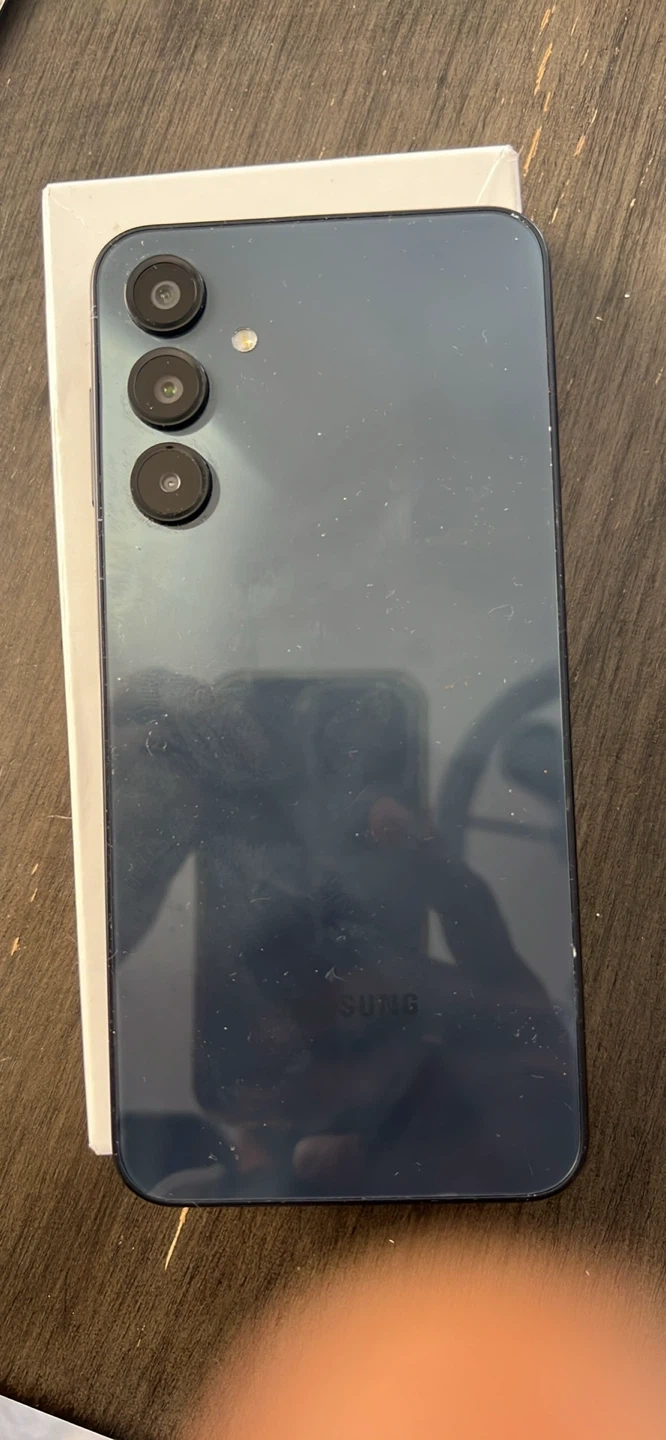 Samsung Galaxy A16 smartphone in a dark blue colour. It's a pre-owned device, and it comes with its original box. This phone is great for everyday use and captures decent photos.