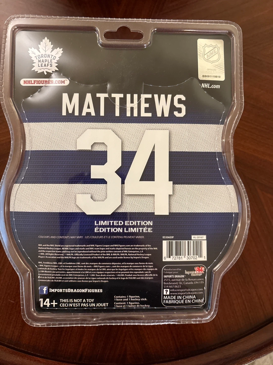 This is a limited edition figure of Auston Matthews. It includes one figure and one hockey stick. It's officially licensed by the NHL.