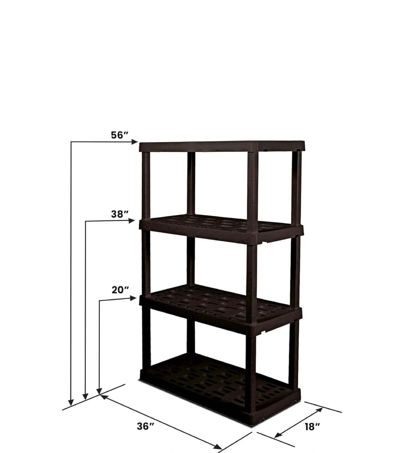(Brand new) New 4-Shelf Heavy Duty Plastic Shelving Unit - Brown