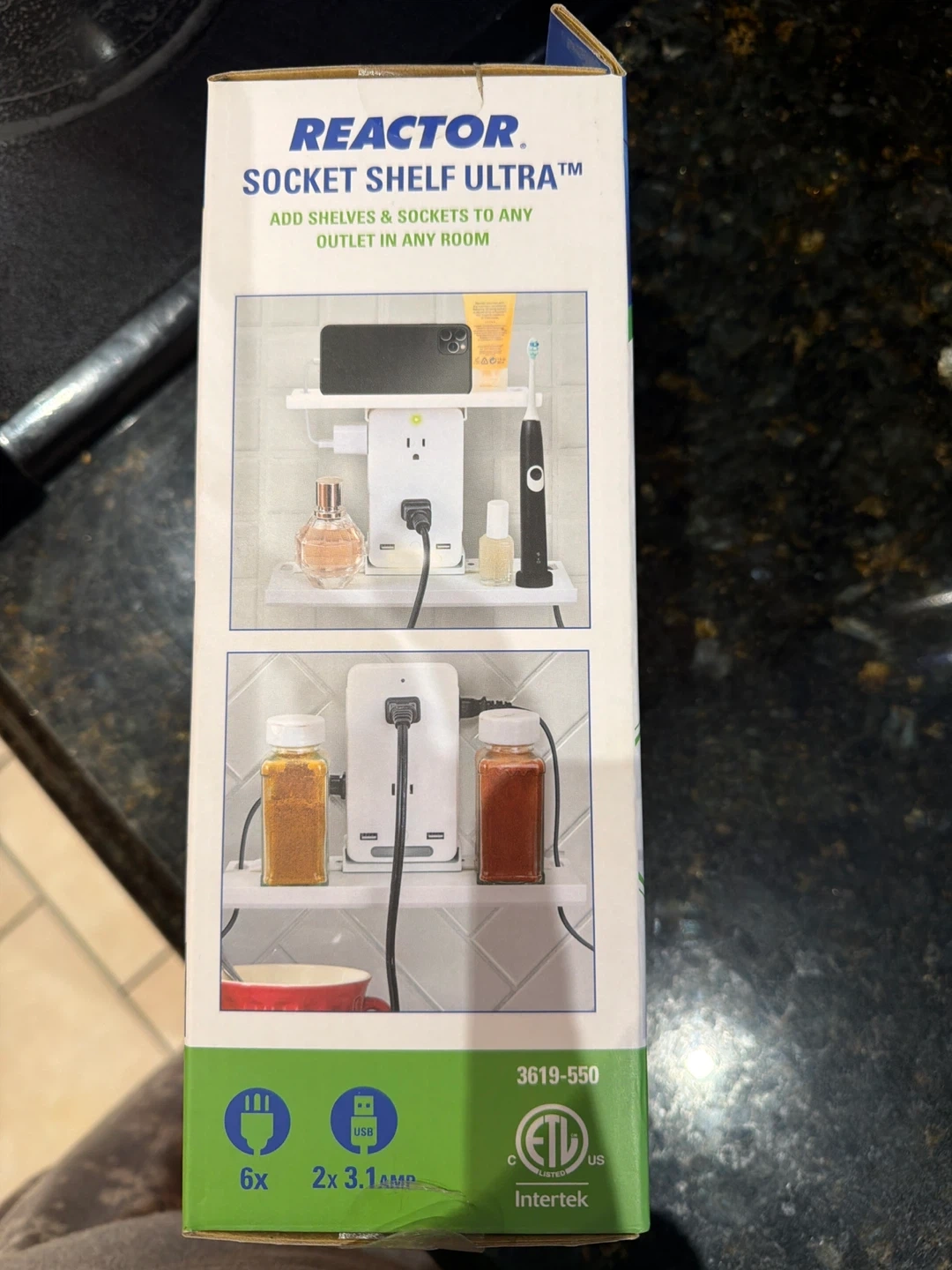 Never been opened. Have one already. This Reactor Socket Shelf Ultra adds shelves and sockets to any outlet. It's ideal for organizing your devices and keeping them charged. It includes 6 AC outlets and 2 USB ports. Porch pickup