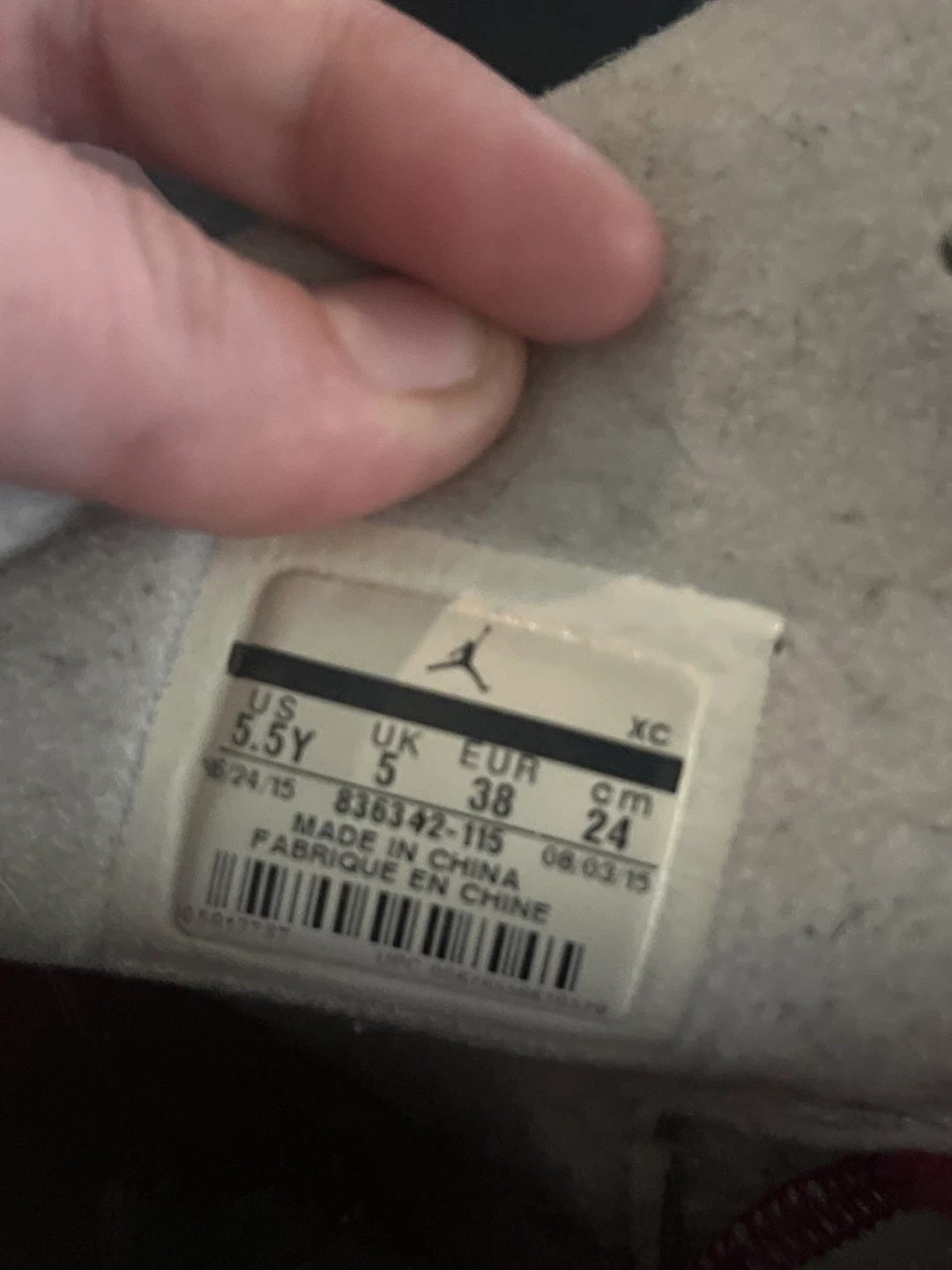 Youth Air Jordan 6 Retro sneakers in white and burgundy. Size 5.5Y (US), 38 (EUR), 24 (CM). Manufactured on 08.03.15. These are great for everyday wear!