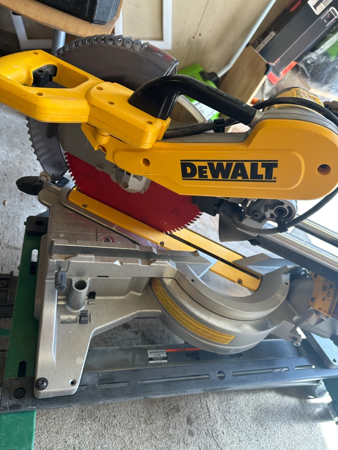 ((Stand not including,,,))This is a DEWALT 12 inch sliding compound miter saw. It's a double side .. This saw is great for making precise cuts on various materials.new is 800$ at Home Depot,, used only 2 months, i have other one so i dont need the second one anymore