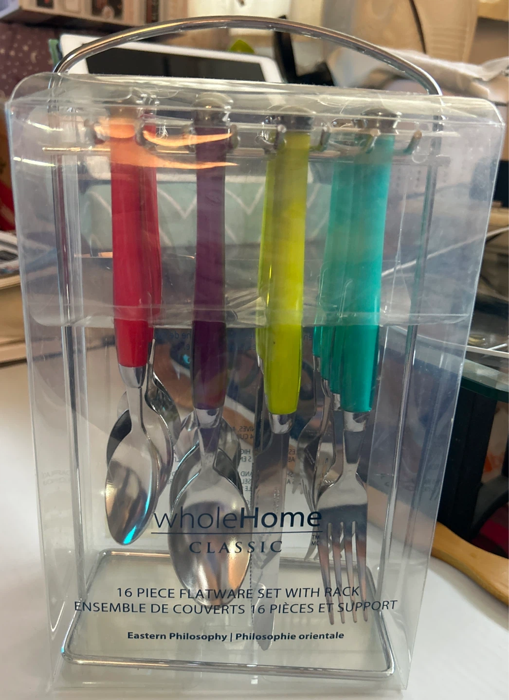 I'm selling a sealed-brand new WholeHome Classic 16-piece flatware set with a rack! This set includes: