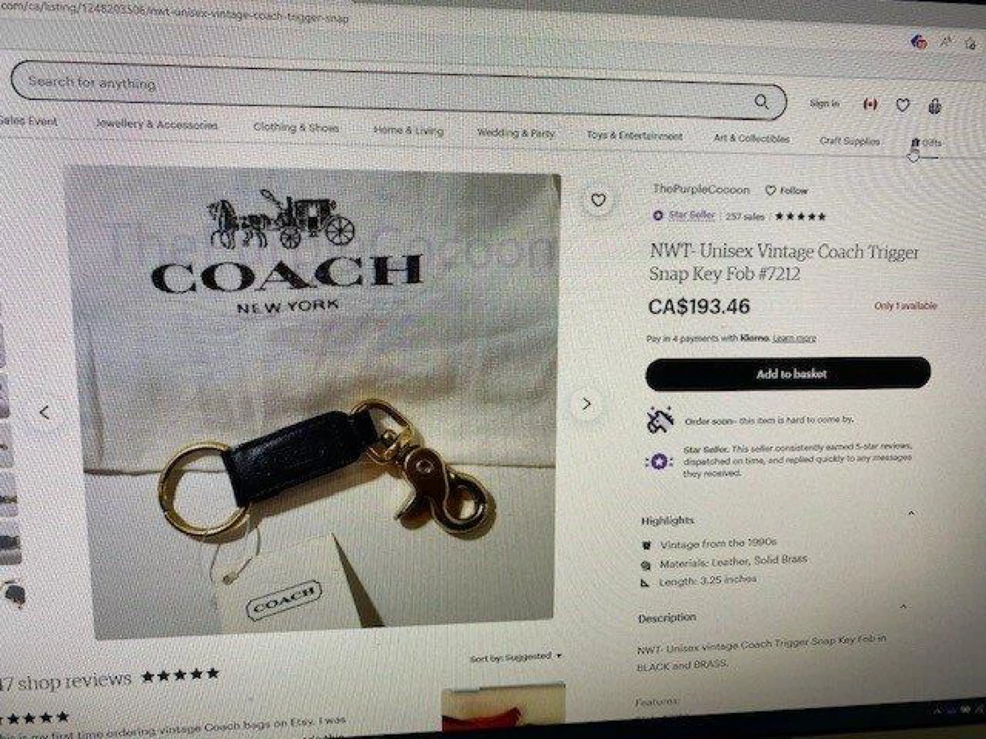 Selling a brand new Coach Trigger Snap Key Fob, model 7212! It's new and in perfect condition and comes with the original box. This unisex vintage key fob is made with leather and solid brass. It's a stylish and practical accessory! On ETSY for over $190.00.