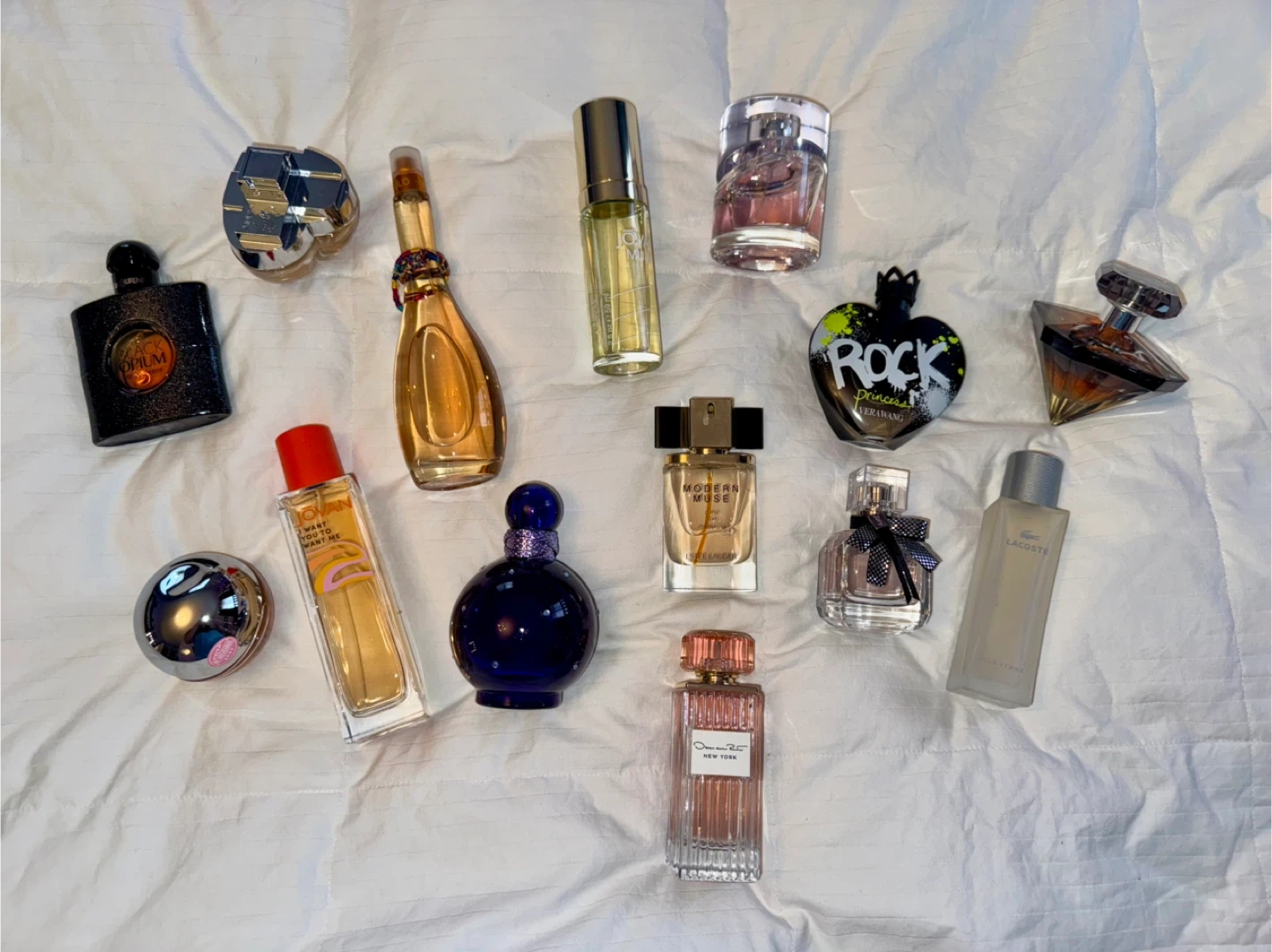 Collection of designer perfumes including Yves Saint Laurent, Vera Wang, and Lacoste. Various sizes and scents are available in this lot. Perfect for sampling different fragrances or for those who love variety! Message for prices. Delivery within reason. Take all 14 scents for $275…