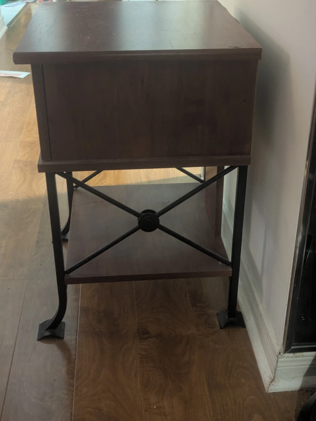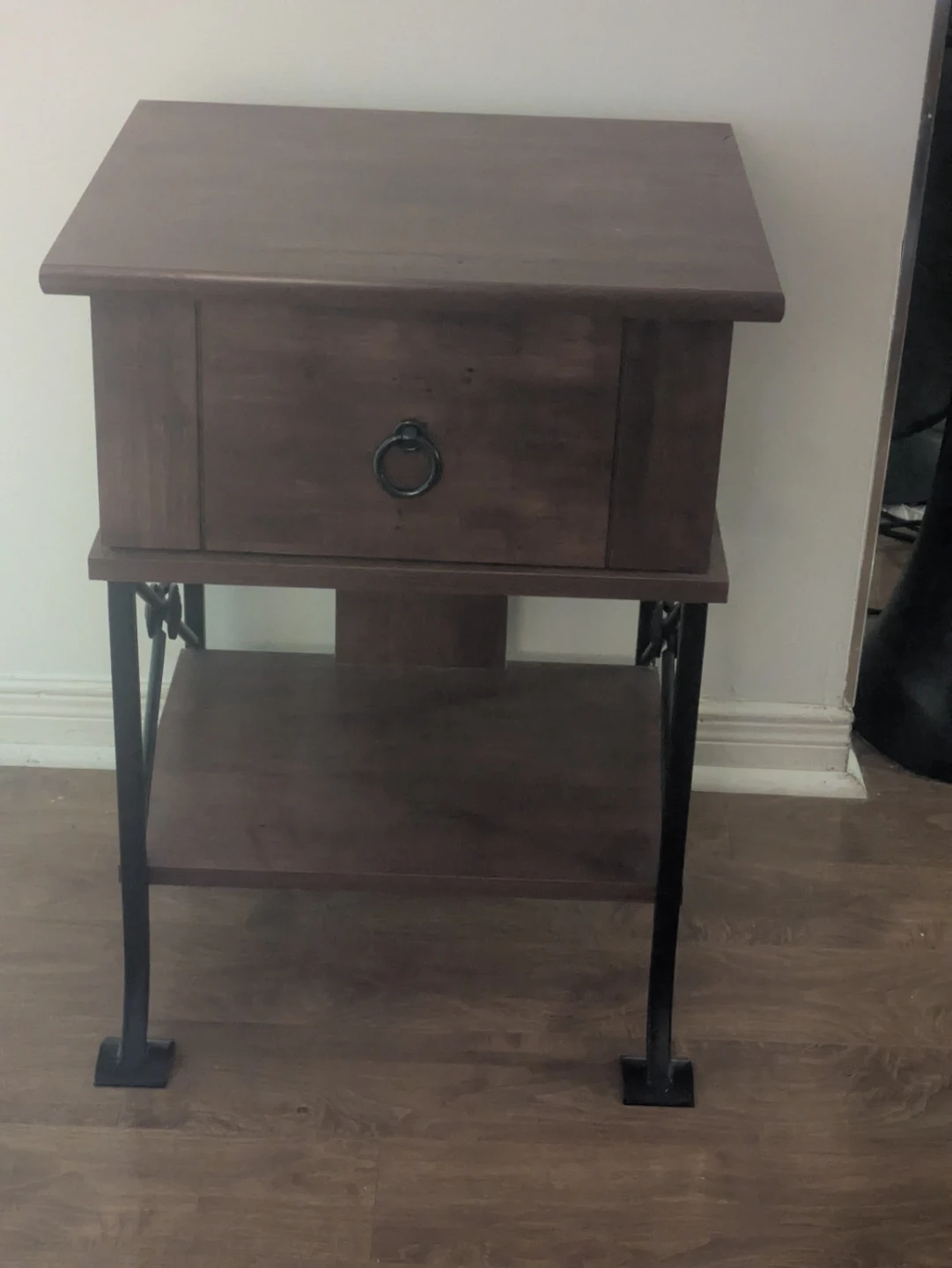 Rustic Wood Nightstand with Metal Base