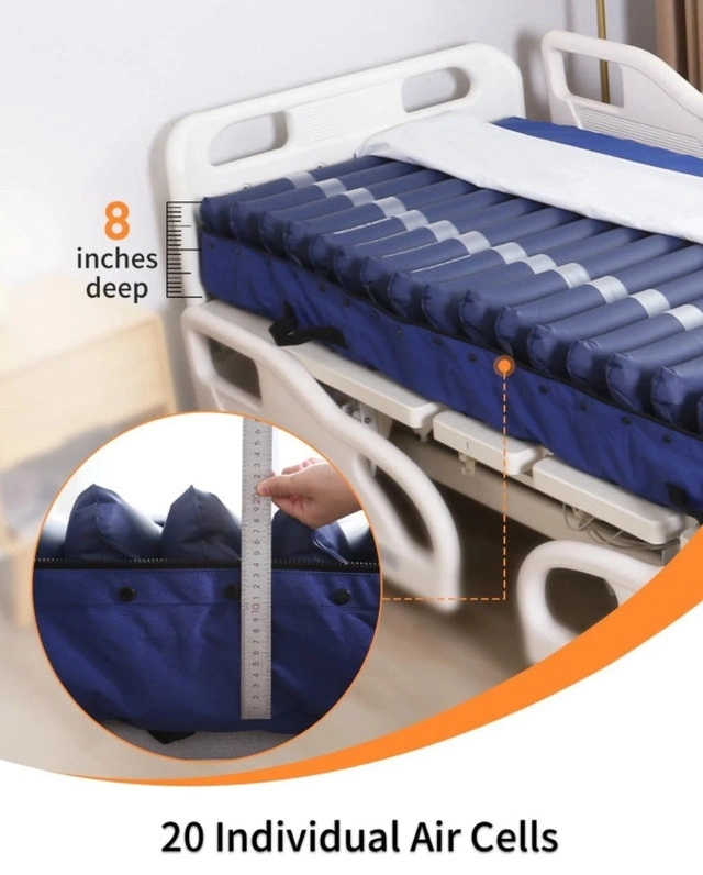 For sale is a BRAND NEW, unused, and unopened low-air-loss pressure air mattress with a customizable pump, perfect for preventing and treating bedsores (pressure ulcers). Make: Viocic, Model: F06VA. This system provides alternating pressure and low air loss for optimal pressure redistribution, shear/friction reduction, and microclimate control. It's designed for home use. The 20 individual air bladders can be adjusted for desired firmness. Dimensions are 36”x 80” with an 8” height. A fully electric adjustable bed with side rails is also available for an additional $300. Message me with any questions.