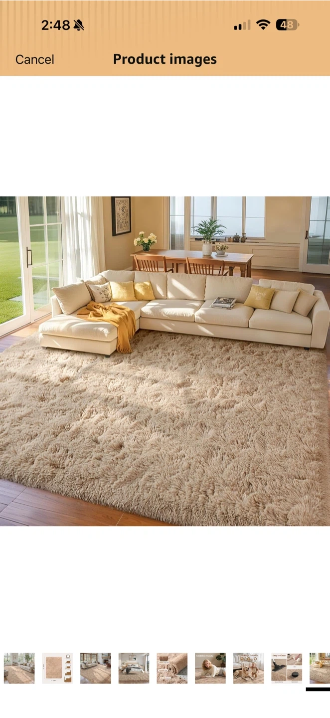 8’ x 10’ Beige Plush Shag Area Rug – High Pile – Open Box