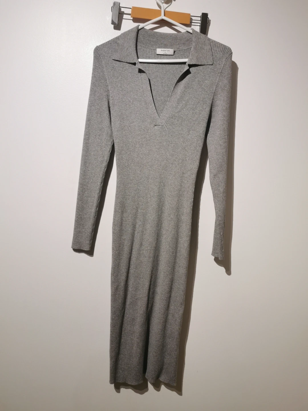 Selling a Babaton ribbed knit midi dress in a lovely grey colour Perfect for a casual or dressed-up look. Feel free to message me with any questions!